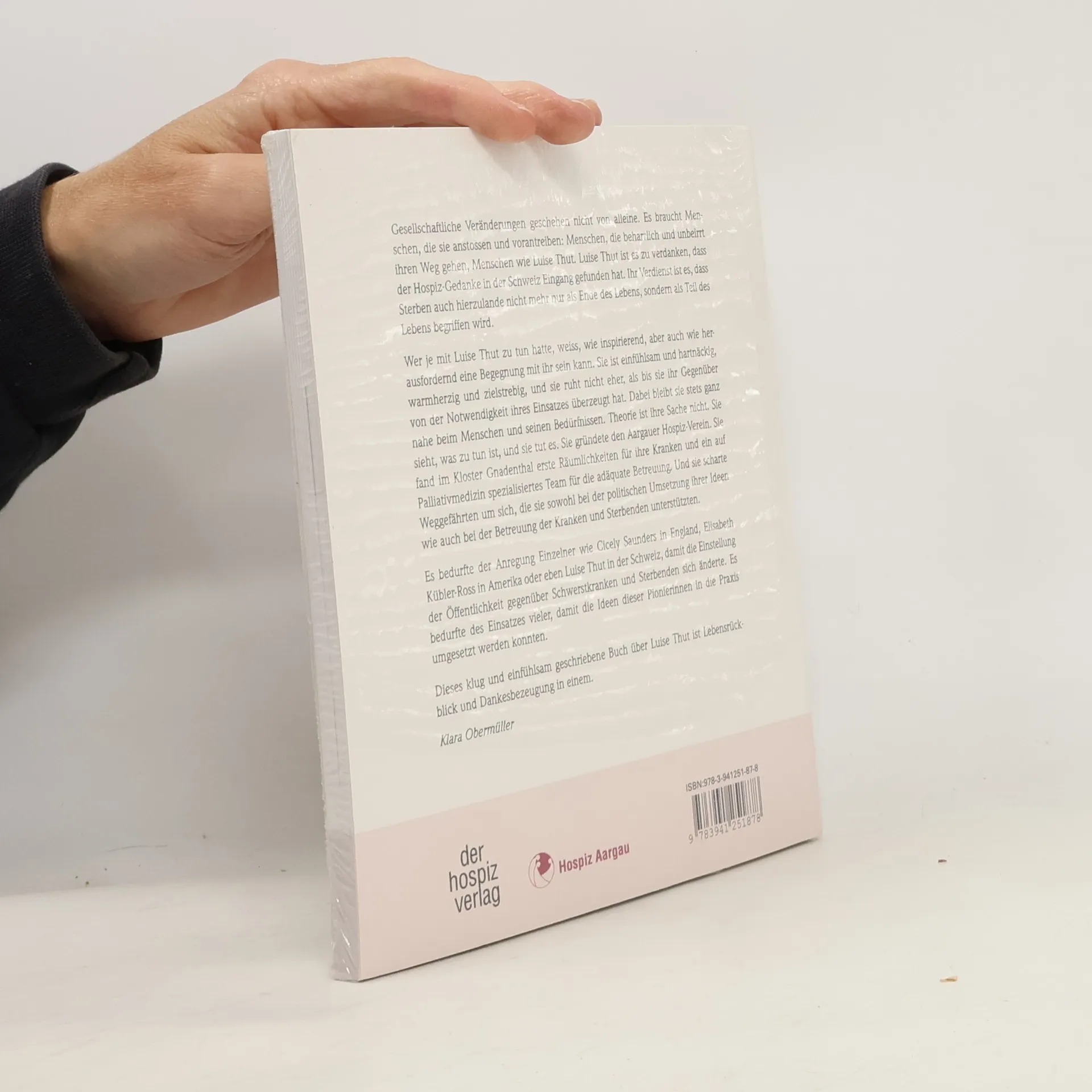 Gesellschaftliche Veränderungen geschehen nicht von alleine. Es braucht Menschen, die sie anstossen und vorantreiben: Menschen wie Luise Thut. Durch ihren unermüdlichen Einsatz hat der Hospiz-Gedanke in der Schweiz Einzug gehalten. Sterben wird hier nicht mehr nur als Ende, sondern als Teil des Lebens betrachtet. Wer Luise Thut begegnet, erkennt schnell, wie inspirierend und herausfordernd eine solche Begegnung sein kann. Sie ist einfühlsam und hartnäckig, warmherzig und zielstrebig, und überzeugt ihr Gegenüber von der Notwendigkeit ihres Engagements. Dabei bleibt sie stets nah am Menschen und seinen Bedürfnissen. Theorie ist nicht ihre Stärke; sie sieht, was zu tun ist, und handelt. Sie gründete den Aargauer Hospiz-Verein, fand im Kloster Gnadenthal erste Räumlichkeiten und stellte ein spezialisiertes Team für die Palliativmedizin zusammen. Zudem sammelte sie Weggefährten, die sie sowohl politisch als auch bei der Betreuung von Kranken und Sterbenden unterstützten. Der Wandel in der öffentlichen Einstellung gegenüber Schwerstkranken und Sterbenden erforderte den Einsatz von Einzelnen wie Luise Thut, sowie von Pionierinnen wie Cicely Saunders und Elisabeth Kübler-Ross. Dieses klug und einfühlsam geschriebene Buch über Luise Thut ist Lebensrückblick und Dankesbezeugung zugleich. Klara Obermüller