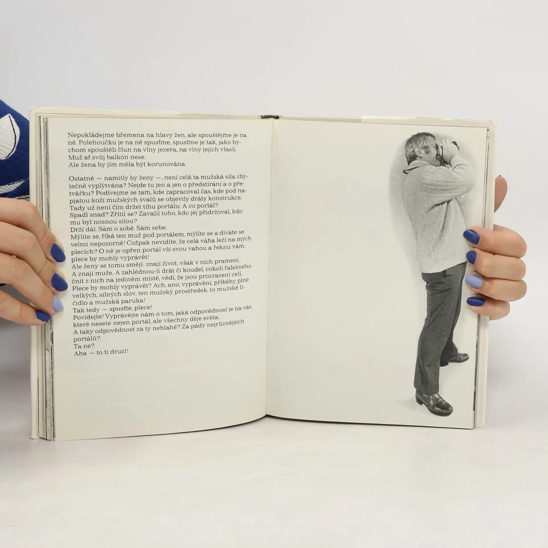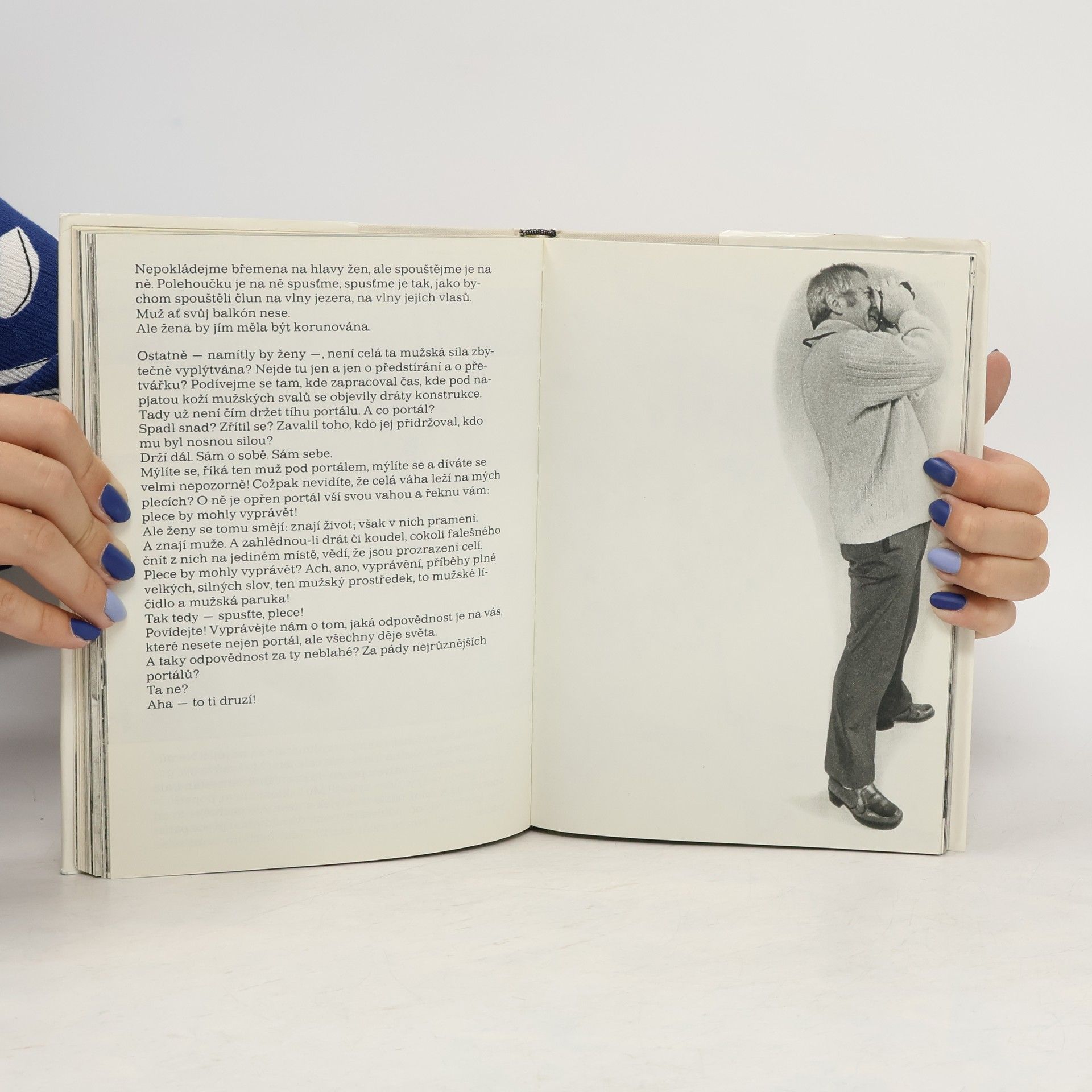 Rozhovory Miroslava Horníčka se sochami, doplněno mnoho autorových fotografií soch a skulptur.