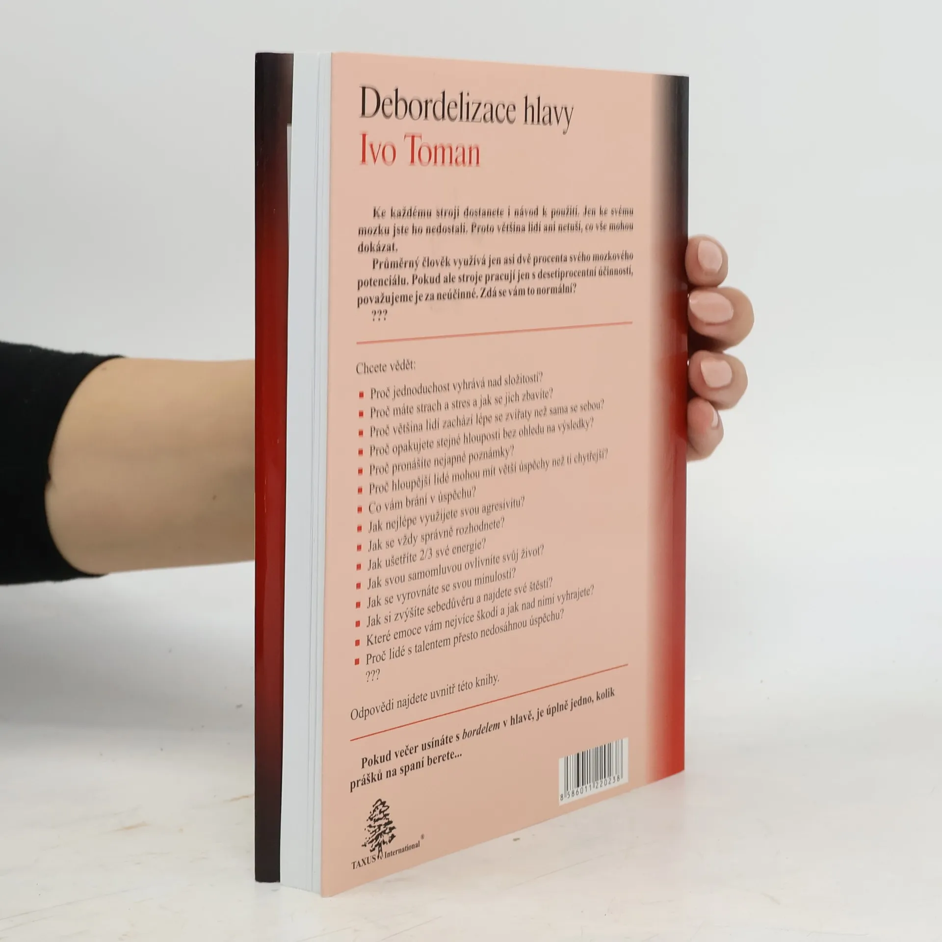 Ke každému stroji dostanete i návod k použití. Jen ke svému mozku jste ho nedostali. Proto většina lidí ani netuší, co vše mohou dokázat. Průměrný člověk využívá jen asi dvě procenta svého mozkového potenciálu. Pokud ale stroje pracují jen s desetiprocentní účinností, považujeme je za neúčinné. Zdá se vám to normální? Chcete vědět: ■ Proč jednoduchost vyhrává nad složitostí? ■ Proč máte strach a stres a jak se jich zbavíte? ■ Proč většina lidí zachází lépe se zvířaty než sama se sebou? ■ Proč opakujete stejné hlouposti bez ohledu na výsledky? ■ Proč pronášíte nejapné poznámky? ■ Proč hloupější lidé mohou mít větší úspěchy než ti chytřejší? ■ Co vám brání v úspěchu? ■ Jak nejlépe využijete svou agresivitu? ■ Jak se vždy správně rozhodnete? ■ Jak ušetříte 2/3 své energie? ■ Jak svou samomluvou ovlivníte svůj život? ■ Jak se vyrovnáte se svou minulostí? ■ Jak si zvýšíte sebedůvěru a najdete své štěstí? ■ Které emoce vám nejvíce škodí ajak nad nimi vyhrajete? ■ Proč lidé s talentem přesto nedosáhnou úspěchu? Odpovědi najdete uvnitř této knihy. Pokud večer usínáte s bordelem v hlavě, je úplně jedno, kolik prášků na spaní berete...