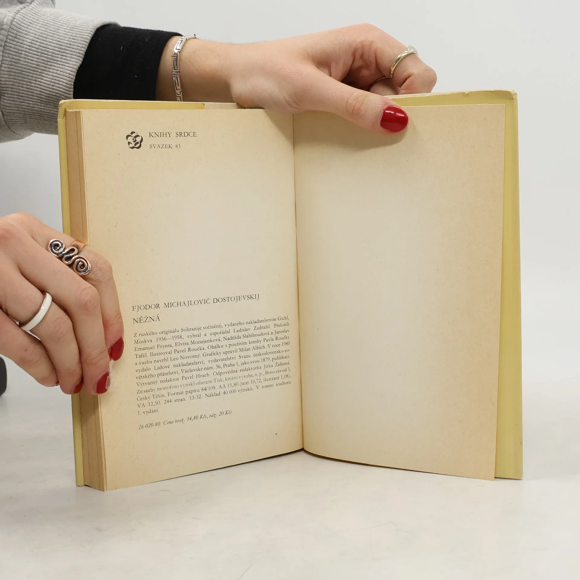 Čtyři drobné milostné prózy. Titulní povídka Něžná je známa i z televizního zpracování. Nerovný svazek mladičké dívky, sirotka a usedlého zastavárníka s vyhraněným životním názorem vyúsťuje do naprostého nepochopení, které mladá žena řeší sebevraždou. Obdobná tematika, marná snaha ženy vymanit se z psychického nadvládí životního partnera, charakterizuje i povídku Bytná. Malý hrdina je svěží vylíčení prvního citového vzplanutí. Soubor uzavírá vrcholové dílo Dostojevského milostné epiky, lehce nadýchnuté vzpomínky na milostná zklamání, pastelově zasněné Bílé noci.