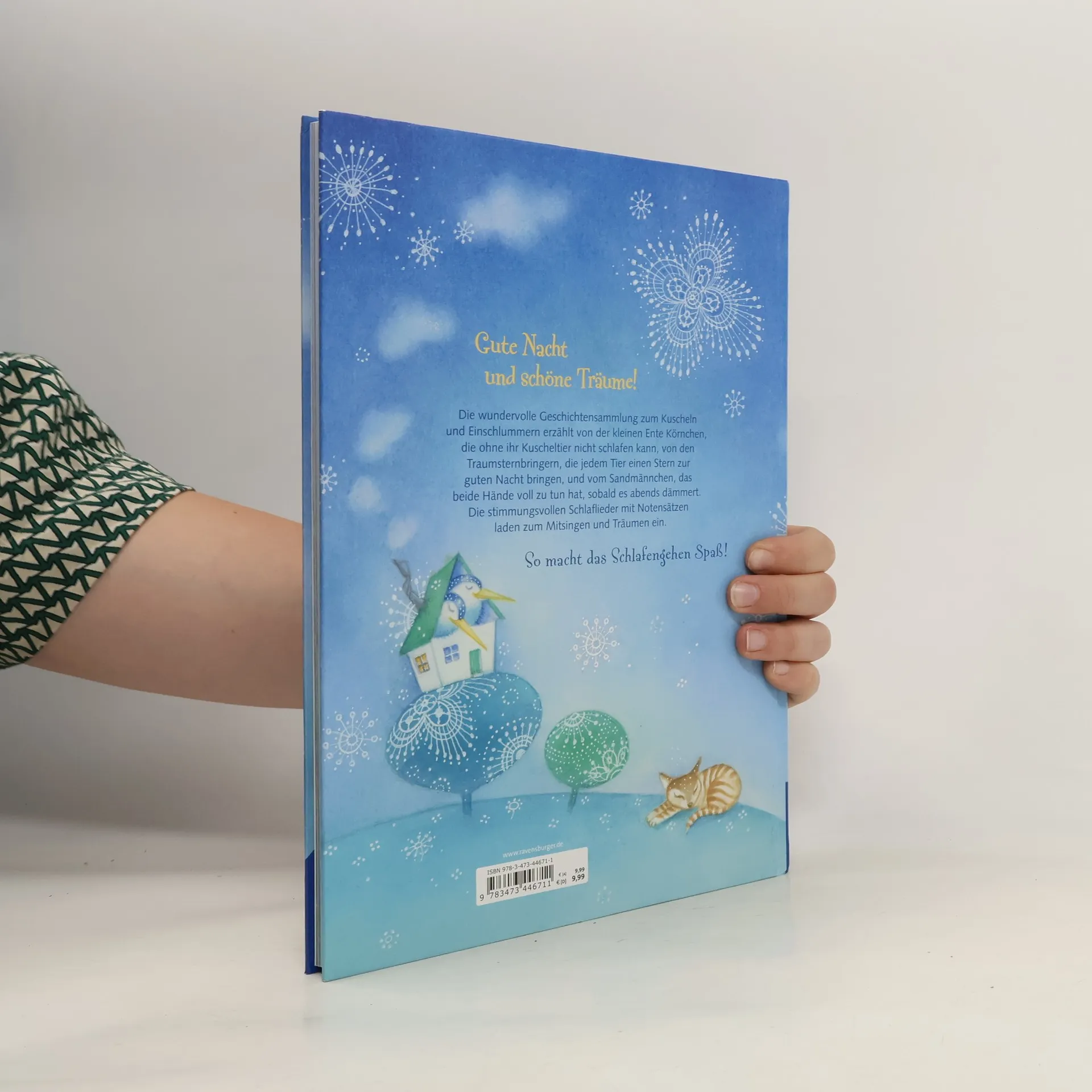 Ein wunderschön illustrierter Geschichten- und Liederschatz zum Vorlesen, Anschauen und Singen: Zwei komplette Bilderbuchgeschichten erzählen von der Ente Körnchen und von den Traumsternbringern. Außerdem gibt es 27 kurze Geschichten vom Sandmännchen und zehn der bekanntesten Gutenachtlieder: Eine abwechslungsreiche Mischung für die ganz besondere Zeit vor dem Schlafengehen!