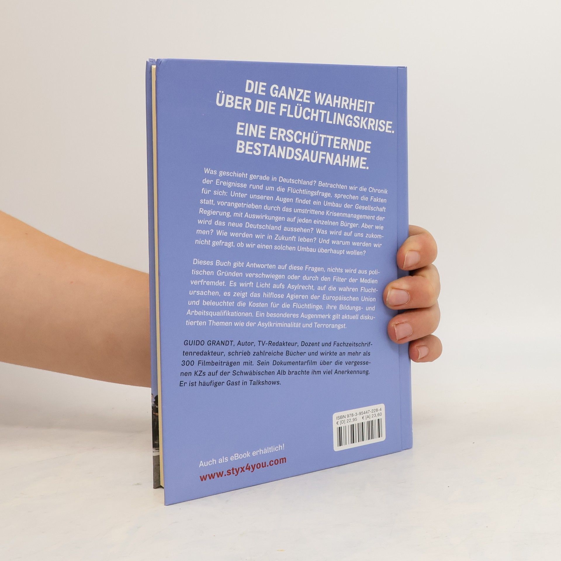 DIE GANZE WAHRHEIT ÜBER DIE FLÜCHTLINGSKRISE. EINE ERSCHÜTTERNDE BESTANDSAUFNAHME. WAS GESCHIEHT GERADE IN DEUTSCHLAND? Betrachten wir die Chronik der Ereignisse rund um die Flüchtlingsfrage, sprechen die Fakten für sich: Unter unseren Augen findet ein Umbau der Gesellschaft statt, vorangetrieben durch das umstrittene Krisenmanagement der Regierung, mit Auswirkungen auf jeden einzelnen Bürger. Aber wie wird das neue Deutschland aussehen? Was wird auf uns zukommen? Wie werden wir in Zukunft leben? Und warum werden wir nicht gefragt, ob wir einen solchen Umbau überhaupt wollen? DIESES BUCH GIBT ANTWORTEN auf diese Fragen, nichts wird aus politischen Gründen verschwiegen oder durch den Filter der Medien verfremdet. Es wirft Licht aufs Asylrecht, auf die wahren Fluchtursachen, es zeigt das hilflose Agieren der Europäischen Union und beleuchtet die Kosten für die Flüchtlinge, ihre Bildungs- und Arbeitsqualifikationen. Ein besonderes Augenmerk gilt aktuell diskutierten Themen wie der Asylkriminalität und Terrorangst. GUIDO GRANDT, Autor, TV-Redakteur, Dozent und Fachzeitschriftenredakteur, schrieb zahlreiche Bücher und wirkte an mehr als 300 Filmbeiträgen mit. Sein Dokumentarfilm über die vergessenen KZs auf der Schwäbischen Alb brachte ihm viel Anerkennung. Er ist häufiger Gast in Talkshows.