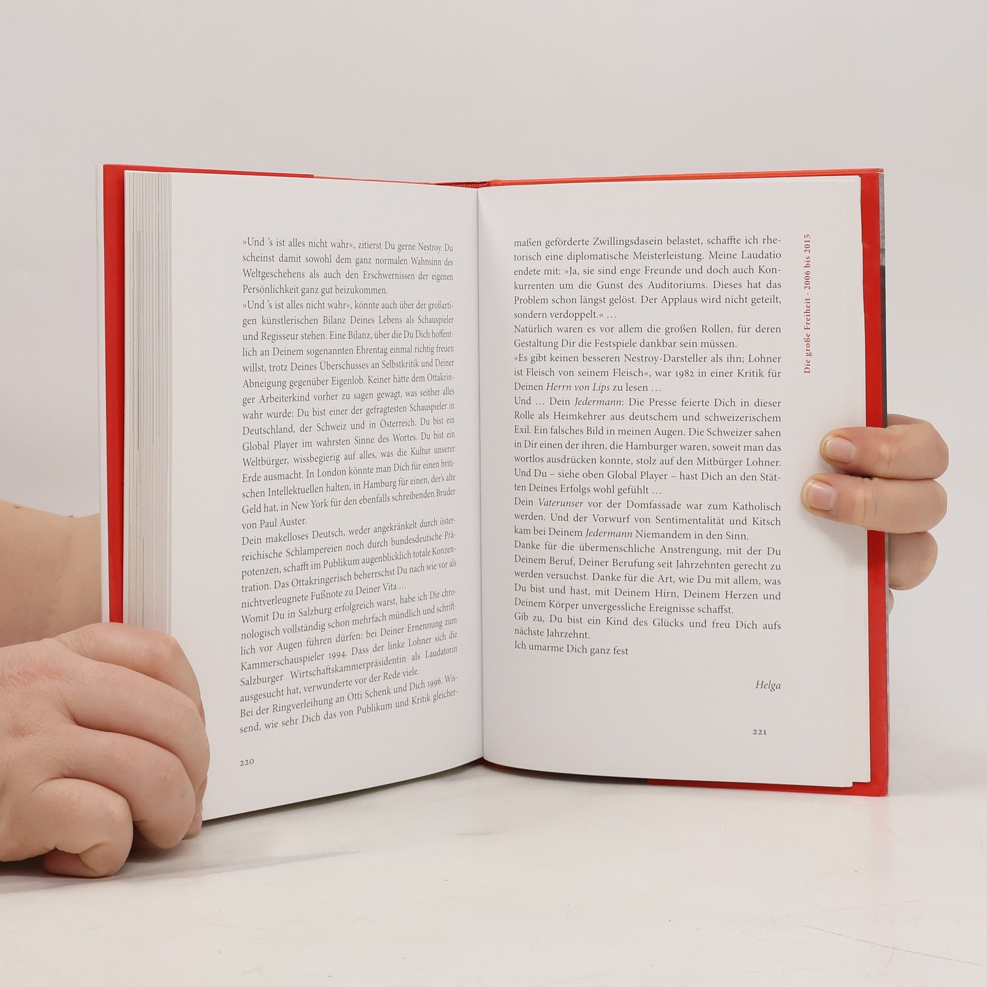 Das Porträt eines großen österreichischen Schauspielers und faszinierenden Menschen. „Er war ein Genie und ein Urtalent. Ich glaube, er war von Anfang an Schauspieler“, sagt Helmuth Lohners Lebenspartner auf der Bühne, Otto Schenk. Der Wiener Theater-‐ und Filmschauspieler begann seine Karriere im Theater in derJosefstadt, bereits ab seinem 22. Lebensjahr war er in Berlin, München, Hamburg und der Schweiz, wo er 38 Jahre lebte, ein begehrter Schauspieler, seit 1972 auch alljährlich bei den Salzburger Festspielen. Nach seiner Rückkehr nach Wien leitete Helmuth Lohner neun Jahre das Theater iin der Josefstadt. Als Regisseur inszenierte erTheaterstücke, Opern, Operetten und Filme. Eva Maria Klinger, die Lohner als Kulturjournalistin über Jahrzehnte begleitet hat, zeichnet – unterstützt von Gesprächen mit seinen Wegbegleitern – das spannende und wahrhaftige Porträt eines großen Unzufriedenen. Sie beschreibt den humorvollen und nachdenklichen Menschen, seine große Kunst, sein Publikum zu packen und zu bezaubern und erzählt gleichzeitig ein Stück deutschsprachiger Theatergeschichte der letzten 60 Jahre.