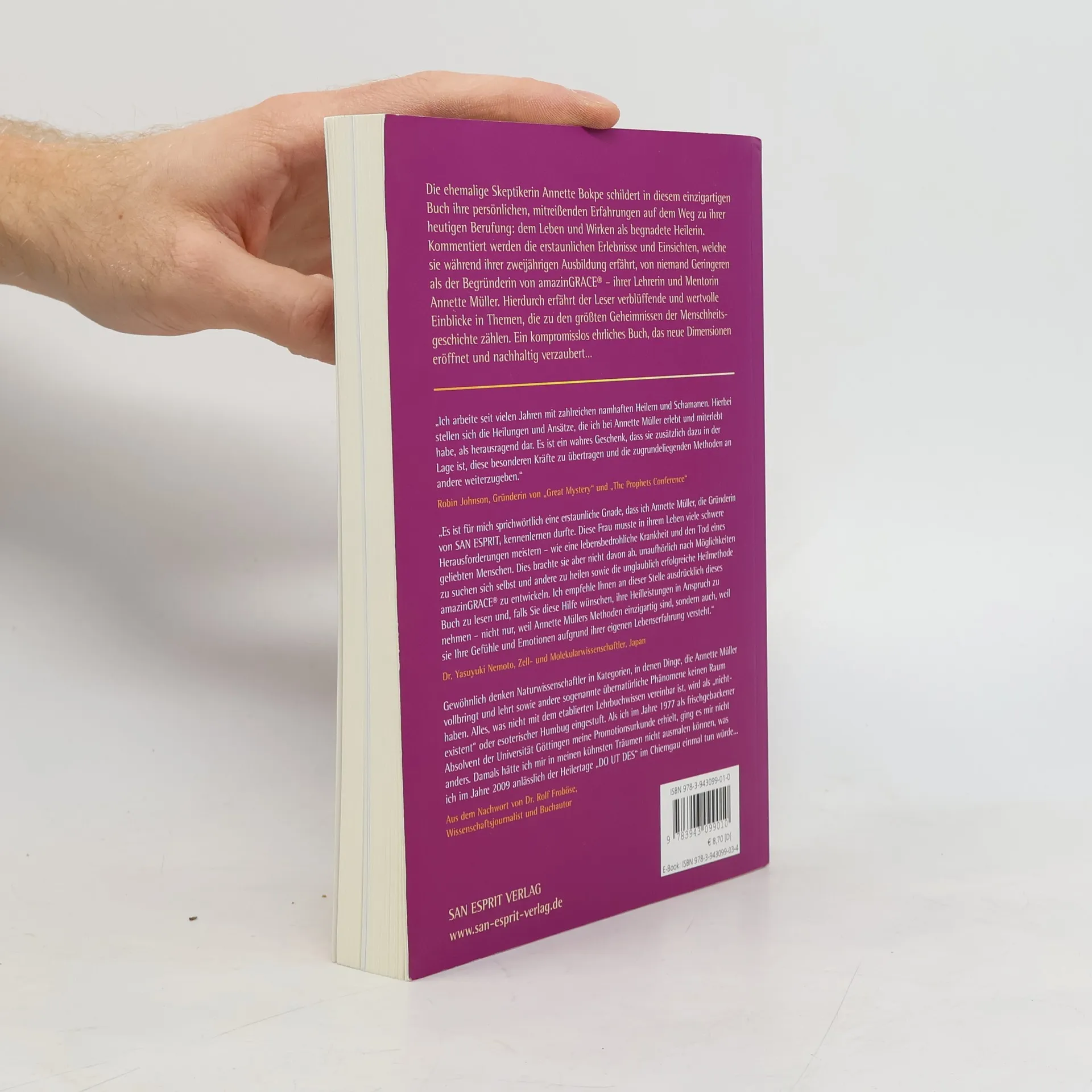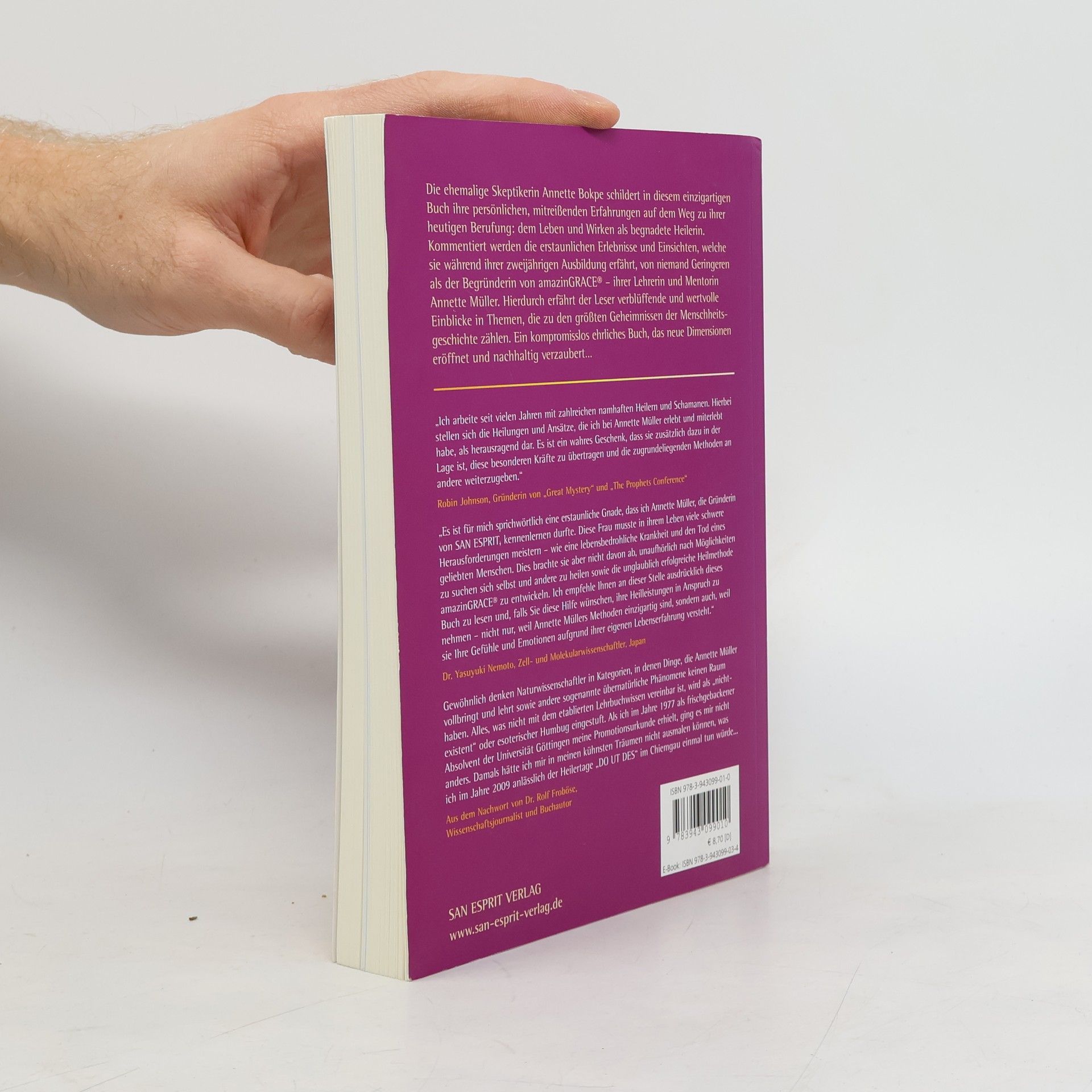 Die ehemalige Skeptikerin Annette Bokpe schildert in diesem einzigartigen Buch ihre persönlichen, mitreißenden Erfahrungen auf dem Weg zu ihrer heutigen Berufung: dem Leben und Wirken als begnadete Heilerin. Kommentiert werden die erstaunlichen Erlebnisse und Einsichten, welche sie während ihrer zweijährigen Ausbildung erfährt, von niemand Geringeren als der Begründerin von amazinGRACE® – ihrer Lehrerin und Mentorin Annette Müller. Hierdurch erfährt der Leser verblüffende und wertvolle Einblicke in Themen, die zu den größten Geheimnissen der Menschheitsgeschichte zählen. Ein kompromisslos ehrliches Buch, das neue Dimensionen eröffnet und nachhaltig verzaubert…