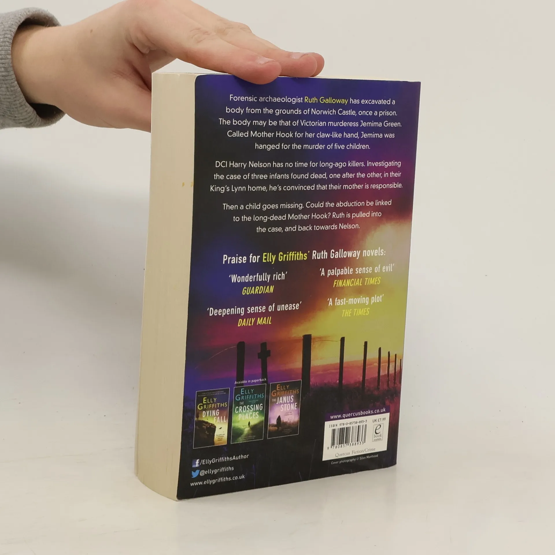 Historical crimes involving a Victorian child killer may hold the key to several contemporary deaths in this macabre outing for Dr Ruth Galloway, forensic archaeologist. Ruth has excavated a body from the grounds of Norwich Castle, which was once a prison. The body may be that of Victorian murderess Jemima Green. Called Mother Hook for her claw-like hand, Jemima was hanged for the murder of five children. DCI Harry Nelson has no time for long-ago killers. Investigating the case of three infants found dead, one after the other, in their King's Lynn home, he's convinced that their mother is responsible. Then a child goes missing. Could the abduction be linked to the long-dead Mother Hook? Ruth is pulled into the case, and back towards Nelson.