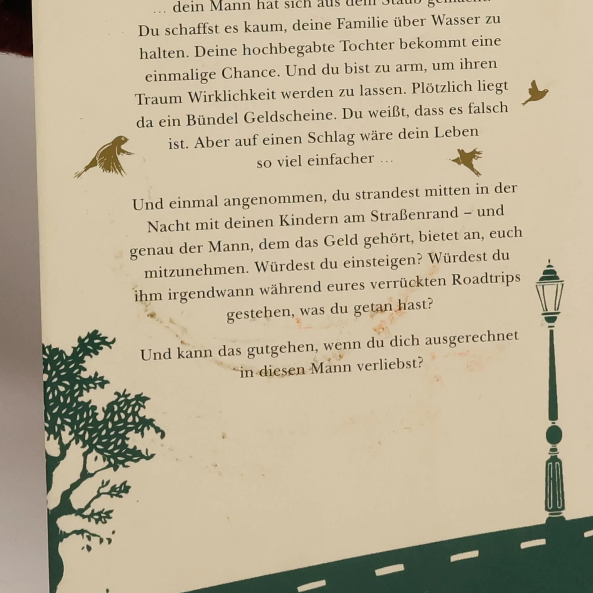 Bestsellerautorin Jojo Moyes erzählt mit viel Wärme und Humor die Geschichte einer unwahrscheinlichen Liebe. Einmal angenommen, dein Mann hat sich aus dem Staub gemacht. Du schaffst es kaum, deine Familie über Wasser zu halten. Deine hochbegabte Tochter bekommt eine einmalige Chance. Und du bist zu arm, um ihren Traum Wirklichkeit werden zu lassen. Plötzlich liegt da ein Bündel Geldscheine. Du weißt, dass es falsch ist. Aber auf einen Schlag wäre dein Leben so viel einfacher … Und einmal angenommen, du strandest mitten in der Nacht mit deinen Kindern am Straßenrand – und genau der Mann, dem das Geld gehört, bietet an, euch mitzunehmen. Würdest du einsteigen? Würdest du ihm irgendwann während eures verrückten Roadtrips gestehen, was du getan hast? Und kann das gut gehen, wenn du dich ausgerechnet in diesen Mann verliebst? Ein warmherziger Roman darüber, was entstehen kann, wenn man Gegensätze überwindet - und darüber, dass wir gemeinsam stärker sind als allein.
