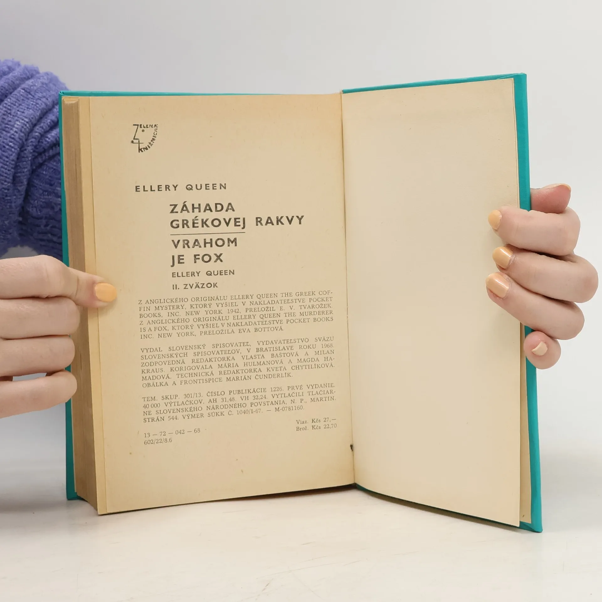 Ellery Queen, zv. 2. -- 1. Záhada Grékovej rakvy -- 2. Vrahom je Fox -- V prvom príbehu Georgis Chalkis, bohatý grécky obchodník so starožitnosťami zomrel náhle, ale okolnosti smrti neboli podozrivé, až kým sa nezačalo zháňanie po testamente a kým sa nezistilo, že v rakve je niekto iný. V druhom prípade je zdanlivo všetko jasné, až kým sa do prípadu, starého niekoľko rokov nezamieša Ellery Queen...