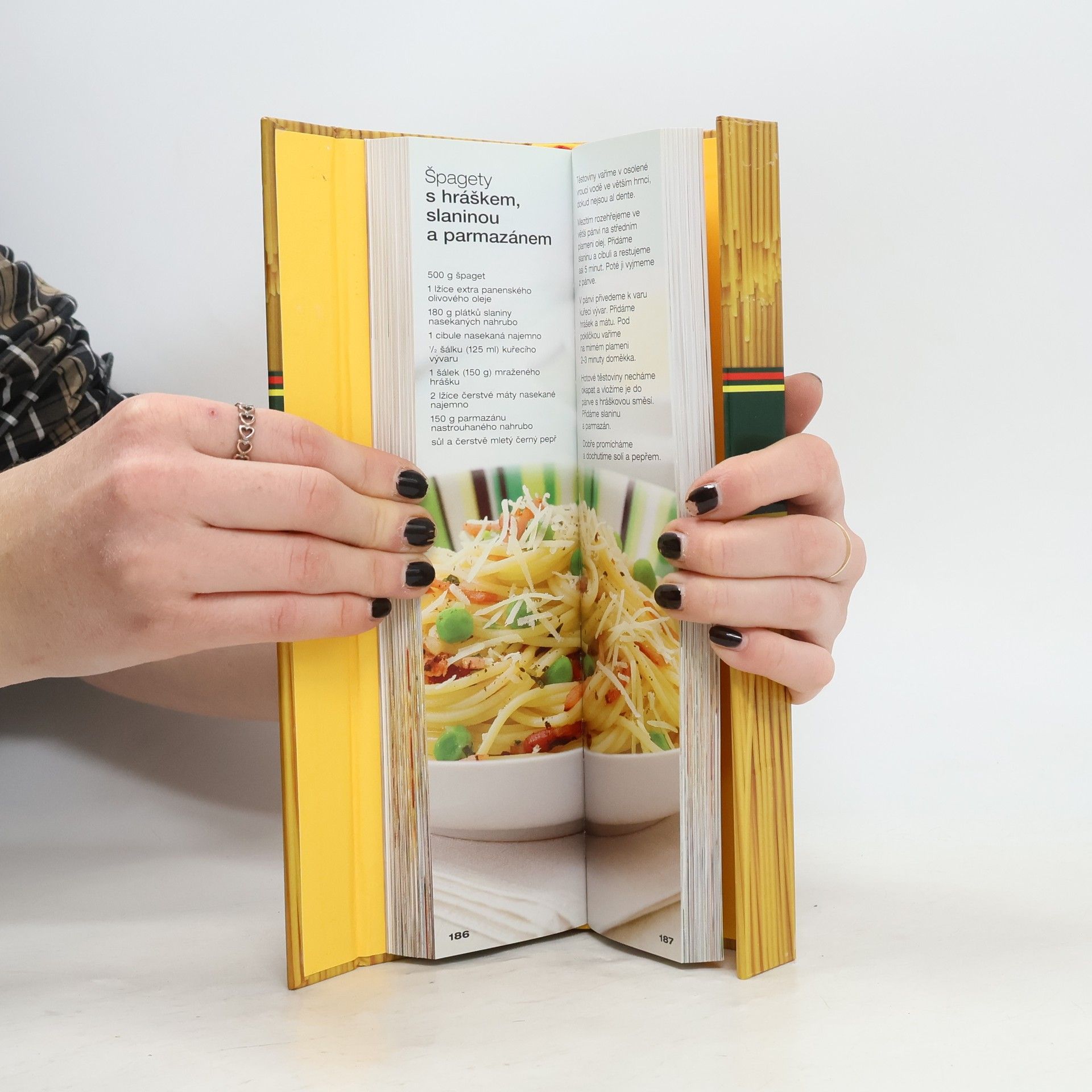 Kuchařku Špagety díky nápaditým deskám v knihovně nikdo nepřehlédne. Uvnitř se skrývá více než 130 různých receptů na špagetové pokrmy. Vybírat lze z rozmanitých variací: těstoviny s bylinkami, zeleninou, vejci, sýrem, smetanou, mořskými plody či s masem. Přehledně sepsané suroviny a srozumitelné postupy krok za krokem pomohou i začínajícímu kuchaři připravit originální a výtečné pokrmy.