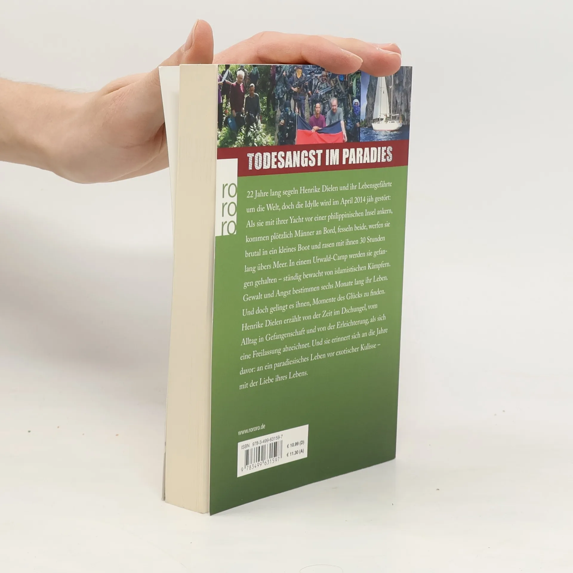 Todesangst im Paradies 22 Jahre lang segeln Henrike Dielen und ihr Lebensgefährte um die Welt, doch die Idylle wird im April 2014 jäh gestört: Als sie mit ihrer Yacht vor einer philippinischen Insel ankern, kommen plötzlich Männer an Bord, fesseln beide, werfen sie brutal in ein kleines Boot und rasen mit ihnen 30 Stunden lang übers Meer. In einem Urwald-Camp werden sie gefangen gehalten – ständig bewacht von islamistischen Kämpfern. Gewalt und Angst bestimmen sechs Monate lang ihr Leben. Und doch gelingt es ihnen, Momente des Glücks zu finden. Henrike Dielen erzählt von der Zeit im Dschungel, vom Alltag in Gefangenschaft und von der Erleichterung, als sich eine Freilassung abzeichnet. Und sie erinnert sich an die Jahre davor: an ein paradiesisches Leben vor exotischer Kulisse – mit der Liebe ihres Lebens.