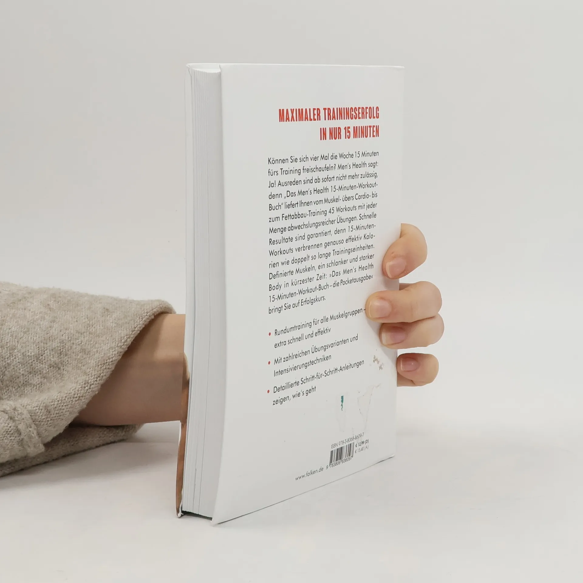 Maximaler Trainingserfolg in nur 15 Minuten Können Sie sich vier Mal die Woche 15 Minuten fürs Training freischaufeln? Men’s Health sagt: Ja! Ausreden sind ab sofort nicht mehr zulässig, denn die Pocketausgabe des „Men’s Health 15-Minuten-Workout-Buchs“ liefert vom Muskel- übers Cardio- bis zum Fettabbau-Training zahlreiche Workouts mit jeder Menge abwechslungsreicher Übungen – schnelle Resultate garantiert! Studien beweisen, dass 15-Minuten-Workouts genauso effektiv Kalorien verbrennen wie doppelt so lange dauernde Trainingseinheiten. Definierte Muskeln, schlanker Körper, starker Body in kürzester Zeit: „Das Men’s Health 15-Minuten-Workout-Buch – die Pocketausgabe“ bringt Sie auf Erfolgskurs. Ausstattung: ca. 600 Farbfotos