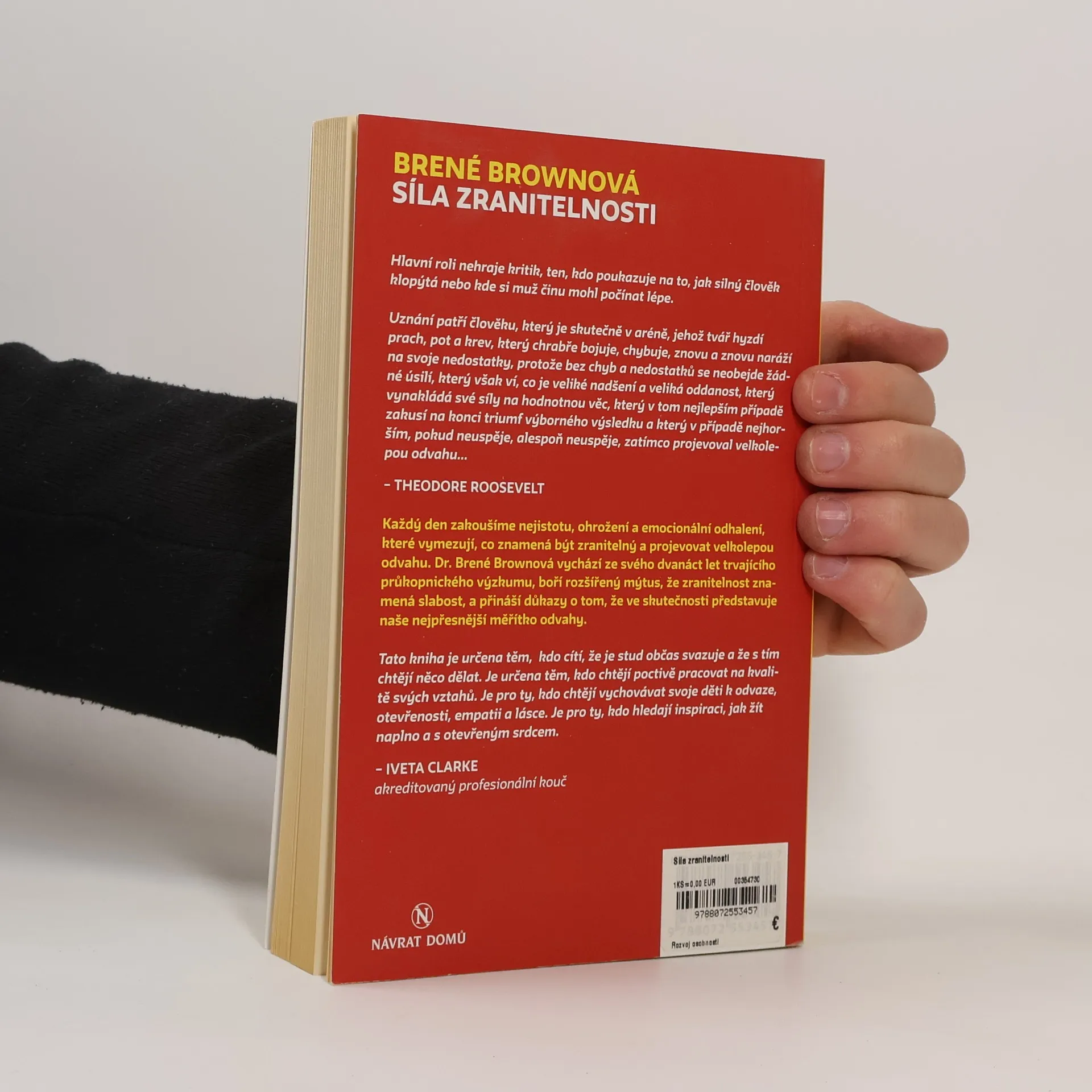 Každý den zakoušíme nejistotu, ohrožení a emocionální odhalení, které vymezují, co znamená být zranitelný a projevovat velkolepou odvahu. Dr. Brené Brownová vychází ze svého dvanáct let trvajícího průkopnického výzkumu, boří rozšířený mýtus, že zranitelnost znamená slabost, a přináší důkazy o tom, že ve skutečnosti představuje naše nejpřesnější měřítko odvahy. Tato kniha je určena těm, kdo cítí, že je stud občas svazuje a že s tím chtějí něco dělat. Je určena těm, kdo chtějí poctivě pracovat na kvalitě svých vztahů. Je pro ty, kdo chtějí vychovávat svoje děti k odvaze, otevřenosti, empatii a lásce. Je pro ty, kdo hledají inspiraci, jak žít naplno a s otevřeným srdcem. Iveta Clarke akreditovaný profesionální kouč Uznání patří člověku, který je skutečně v aréně, jehož tvář hyzdí prach, pot a krev, který chrabře bojuje, znovu a znovu naráží na svoje nedostatky, protože bez chyb a nedostatků se neobejde žádné úsilí, který však ví, co je veliké nadšení a veliká oddanost, který vynakládá své síly na hodnotnou věc, který v tom nejlepším případě zakusí na konci triumf výborného výsledku a který v případě nejhorším, pokud neuspěje, alespoň neuspěje, zatímco projevoval velkolepou odvahu... Theodore Roosevelt