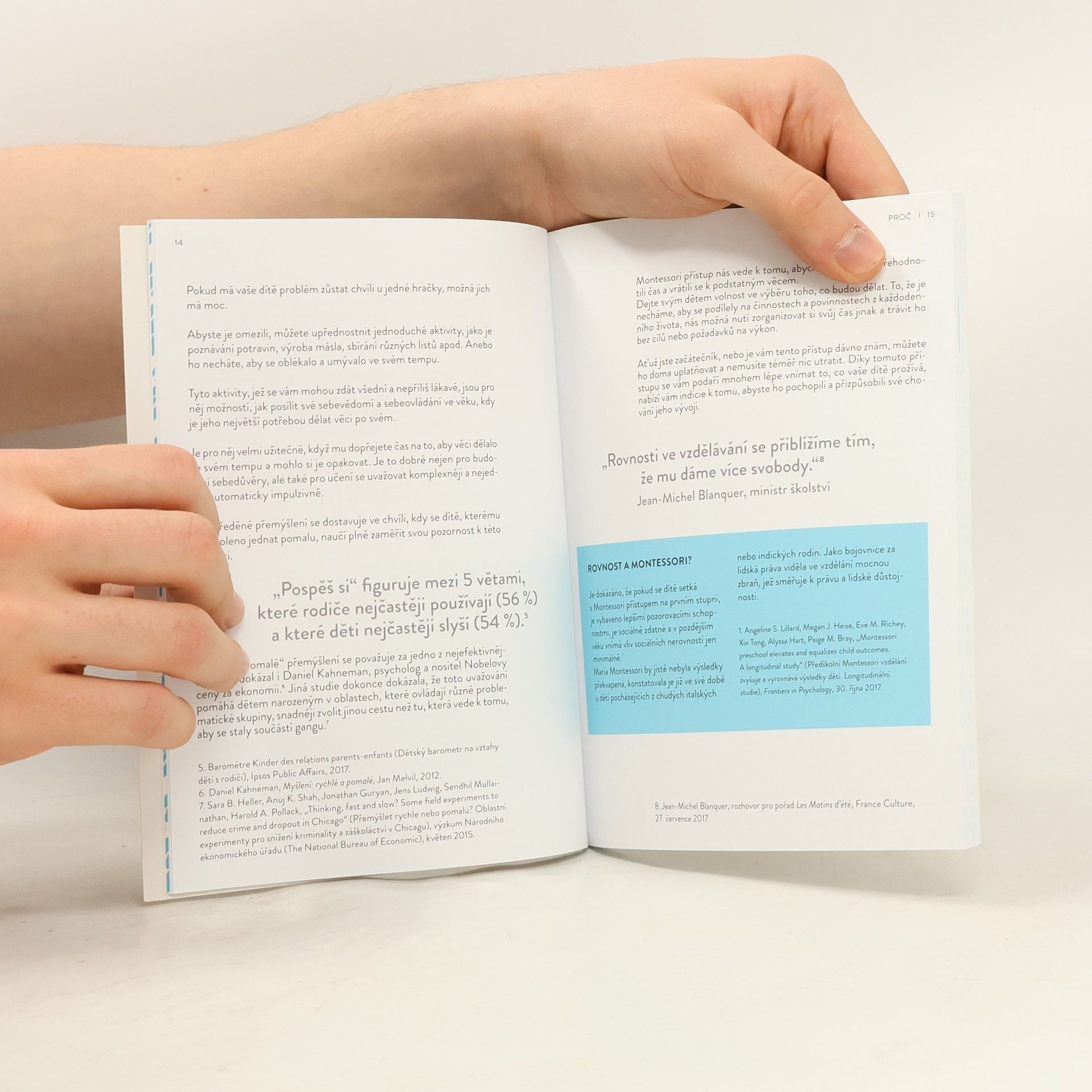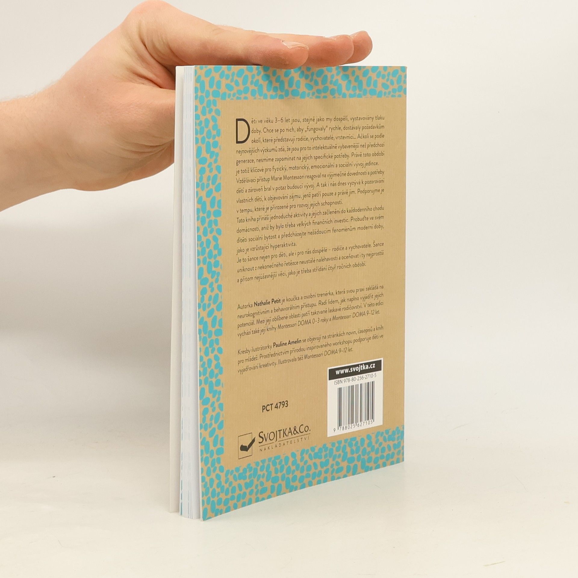 Děti ve věku 3-6 let jsou, stejně jako my dospělí, vystavovány tlaku doby. Chce se po nich, aby "fungovaly" rychle, dostávaly požadavkům okolí, které představují rodiče, vychovatelé, vrstevníci… Ačkoli se dle nejnovějších výzkumů zdá, že jsou pro to intelektuálně vybavenější než generace předchozí, nesmíme zapomínat na jejich specifické potřeby. Právě toto období je totiž klíčové pro fyzický, motorický, emocionální a sociální vývoj jedince. Vzdělávací přístup Marie Montessori na výjimečné dovednosti a potřeby dětí reagoval a zároveň bral v potaz budoucí vývoj. A tak i nás dnes vyzývá k pozorování vlastních dětí, k objevování zájmu, jež patří pouze a právě jim. Podporujme je v tempu přirozeném pro rozvoj jejich schopností. Jednoduché aktivity, jejich začlenění do každodenního chodu domácnosti bez nutnosti velkých finančních investic - to přináší tato kniha. Probuďte ve svém dítěti sociální bytost a předcházejte nežádoucím fenoménům moderní doby, jako je vzrůstající hyperaktivita. Je to šance nejen pro děti, ale i pro nás dospělé - rodiče a vychovatele. Šance uniknout z nekonečného řetězce neustálé naléhavost a oceňovat i ty nejprostší a přitom nejúžasnější věci, jako je třeba střídání čtyř ročních období.