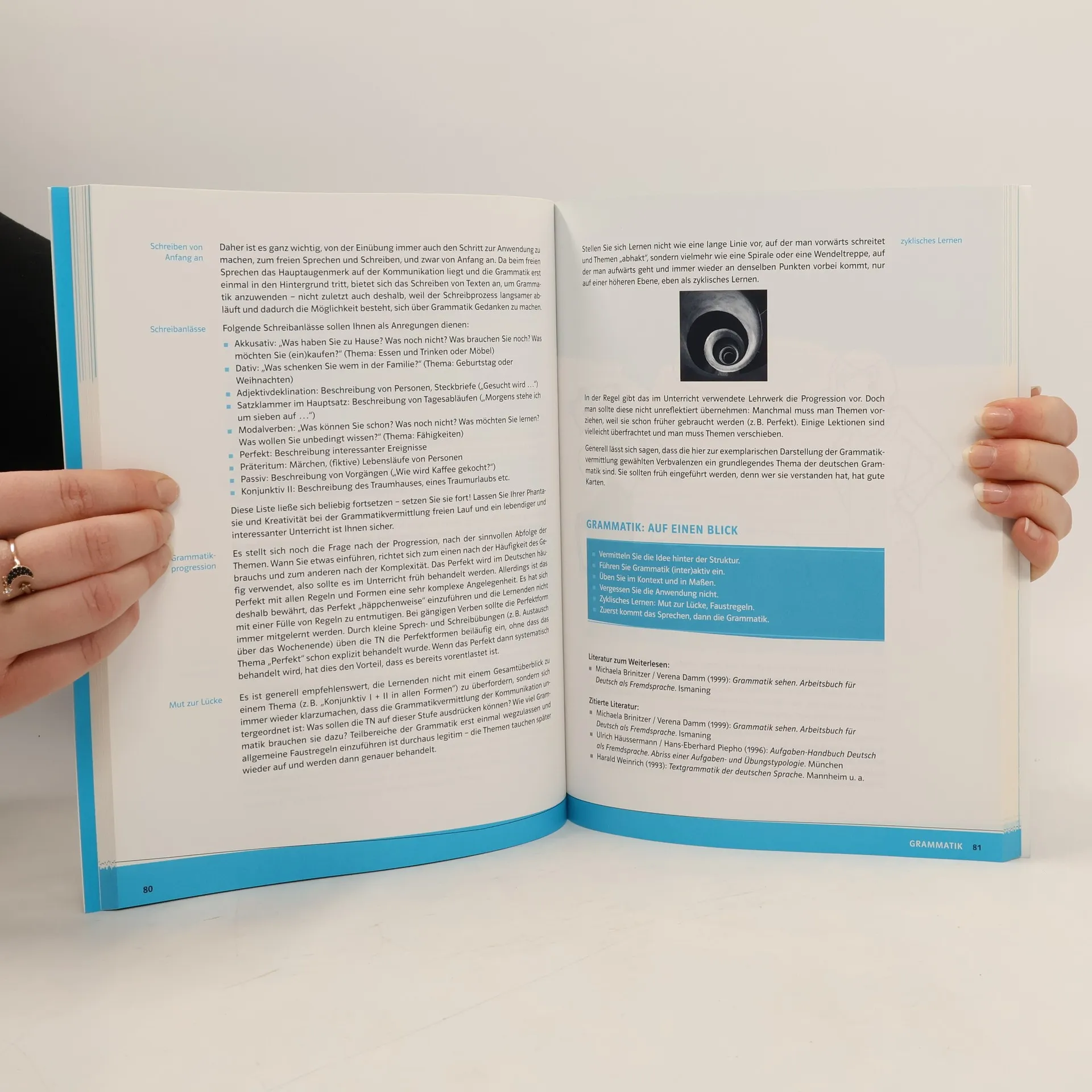 Die Neuauflage dieses praktischen Ratgebers wurde erweitert und ergänzt. Das ist neu: Leitfaden für Neueinsteiger und Ehrenamtliche. Extrakapitel : Für alle, die auf einmal Deutsch unterrichten. Perfekt für den Einstieg : In vier Abschnitten wird gezeigt, wie man die ersten Unterrichtstunden gestaltet, Wörter erklärt, die Lernenden zum Sprechen bringt und Grammatik anschaulich macht. Mit Zusatzmaterial : Kopiervorlagen online als Download Das ist bewährt: Fundierte Einführung in die DaF-Didaktik . Verstehen und Vermitteln der vier Fertigkeiten Sprechen, Hören, Schreiben und Lesen. Einführung und Anwendung der Basiskompetenzen Wortschatz, Grammatik, Phonetik und Landeskunde. Vermittlung von unterrichtsrelevanten Themen wie Interaktion im Unterricht, heterogene Lerngruppen und Binnendifferenzierung, Strategien und Lernerautonomie, Medien- und Aktivitätenrepertoire, Unterrichtsplanung, Tests und Prüfungen. Mit Video-Tutorial der Ausspracheexpertin Sandra Kroemer.