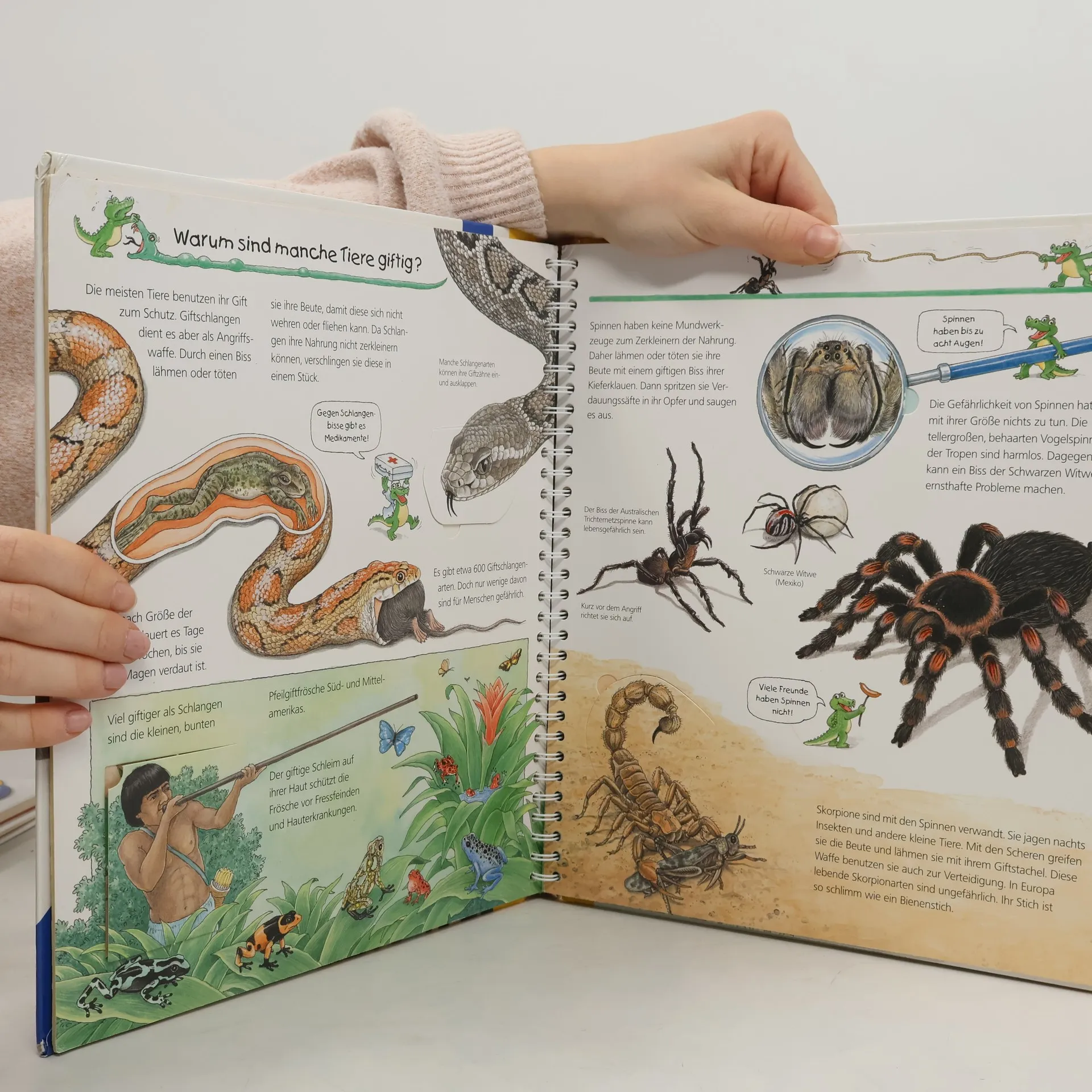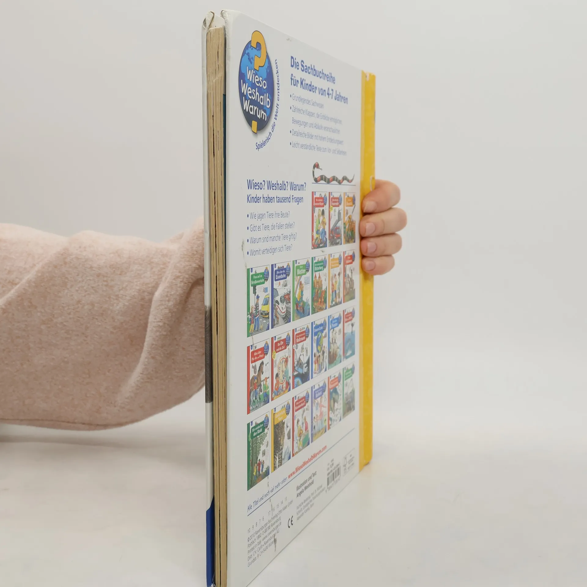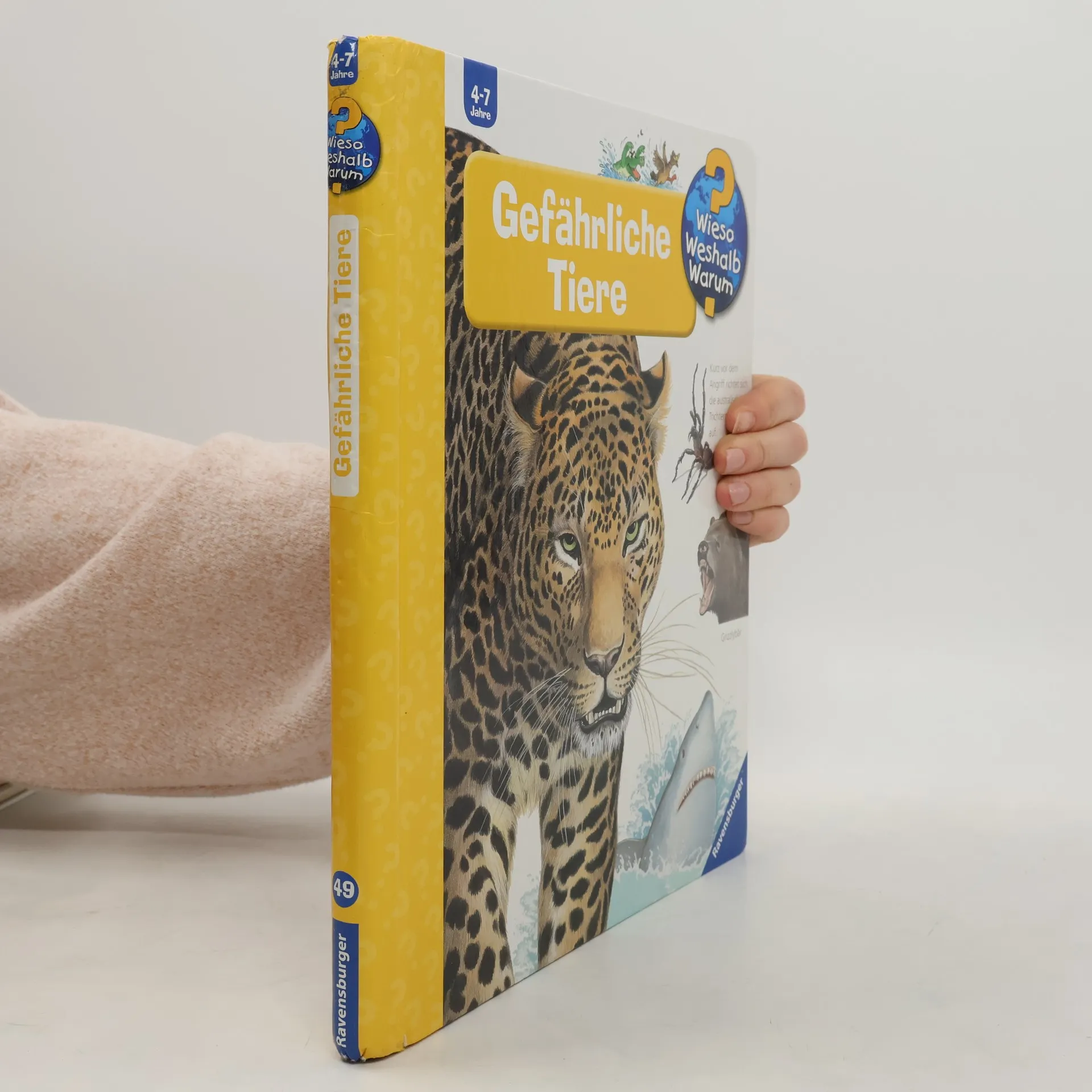 Tierisch gefährlich: Hier tummeln sich Raubkatzen mit scharfen Klauen, Haie mit spitzen Zähnen und giftige Schlangen und Spinnen. Das Buch stellt viele dieser Tiere vor und zeigt mit eindrucksvollen Klappen, warum sie bedrohlich sind. Kinder erfahren, wie Löwen und Tiger jagen, warum manche Tiere giftig sind und wie sie sich tarnen. Zudem wird erläutert, weshalb Jäger und Beutetiere über besonders scharfe Sinne verfügen und warum einige von ihnen Stacheln oder einen Panzer besitzen. Wieso? Weshalb? Warum? ist eine Sachbuchreihe für Kinder von 4–7 Jahren, die Antworten auf viele neugierige Fragen bietet. Sie behandelt Themen aus der Alltags- und Interessenswelt der Kinder altersgerecht und mit viel Liebe zum Detail. Detailreiche Bilder, verständliche Sachtexte und überraschende Klappen, die Bewegungen oder Abläufe veranschaulichen, ermöglichen es Kindern, sich ihre Themen selbst zu erschließen. Der Spaß am eigenhändigen Entdecken, die liebevolle Umsetzung und die qualitativ hochwertige Ausstattung garantieren langanhaltende Freude an jedem einzelnen Buch.