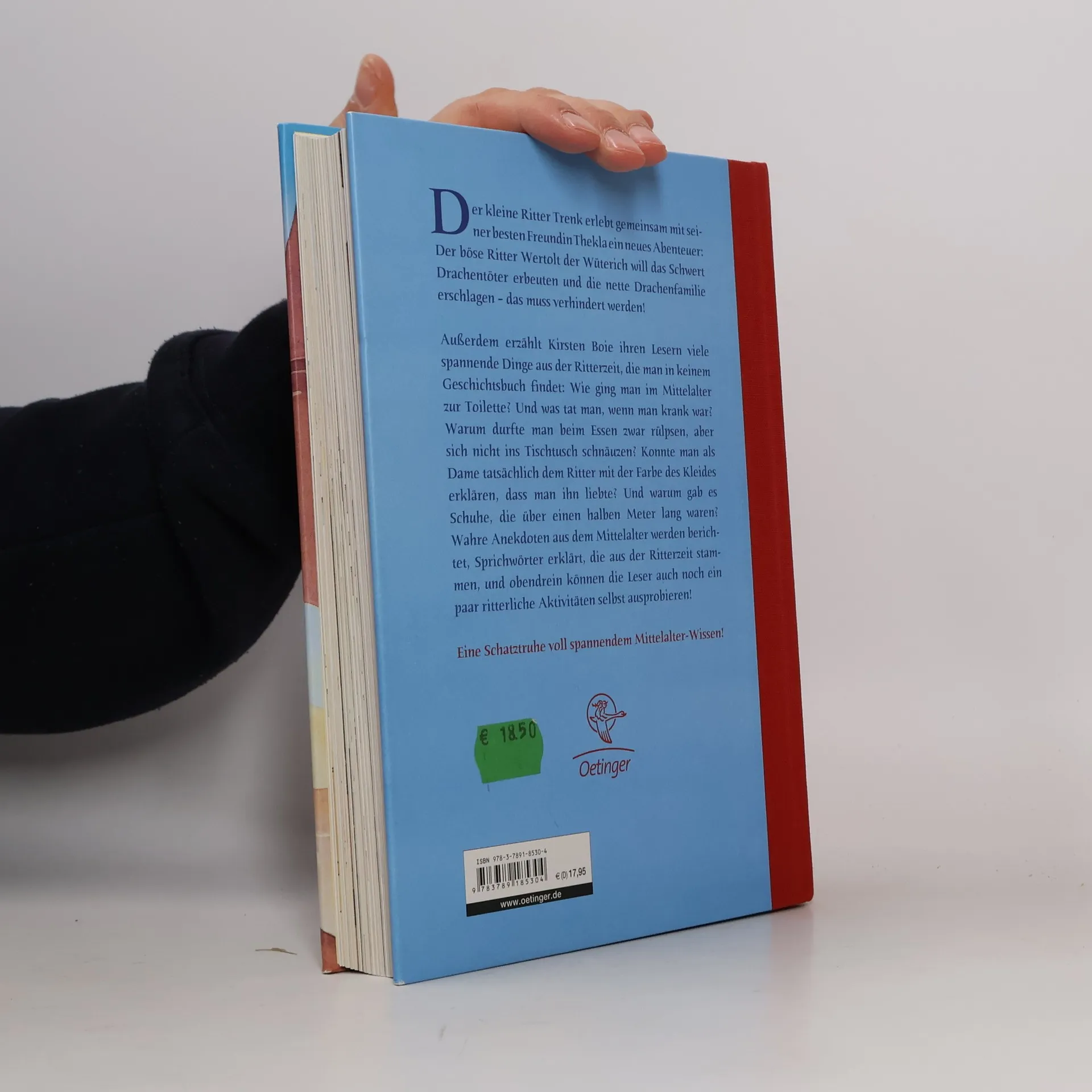 Auf ins Mittelalter! Ein Geschichtsausflug mit dem kleinen Ritter Trenk. Gibt der böse Ritter Wertolt denn niemals Ruhe? Nun will er die freundliche Drachenfamilie erschlagen. Doch das lassen Trenk und seine Freundin Thekla nicht zu! Nach jedem Kapitel führt ein umfangreicher Sachteil in das Leben der Menschen im Mittelalter ein. Wie war das damals mit der Schule? Warum durfte man beim Essen rülpsen, sich aber nicht ins Tischtuch schnäuzen? Wie wurden Handwerker ausgebildet, was bedeutete es, ein Leibeigener zu sein und welche Waffen trugen die Ritter? Außerdem gibt es Bastel- und Rezeptanregungen und man erfährt Erstaunliches über auch heute noch gebräuchliche Sprichwörter. Kirsten Boie lädt in ihrem Buch mit prachtvollen Illustrationen von Barbara Scholz, einem hinreißenden Trenk-Abenteuer, spielerisch aufbereitetem Wissen über das Leben in jener Zeit und Beschäftigungstipps zu einem ebenso spannenden wie lehrreichen Ausflug ins Mittelalter ein.