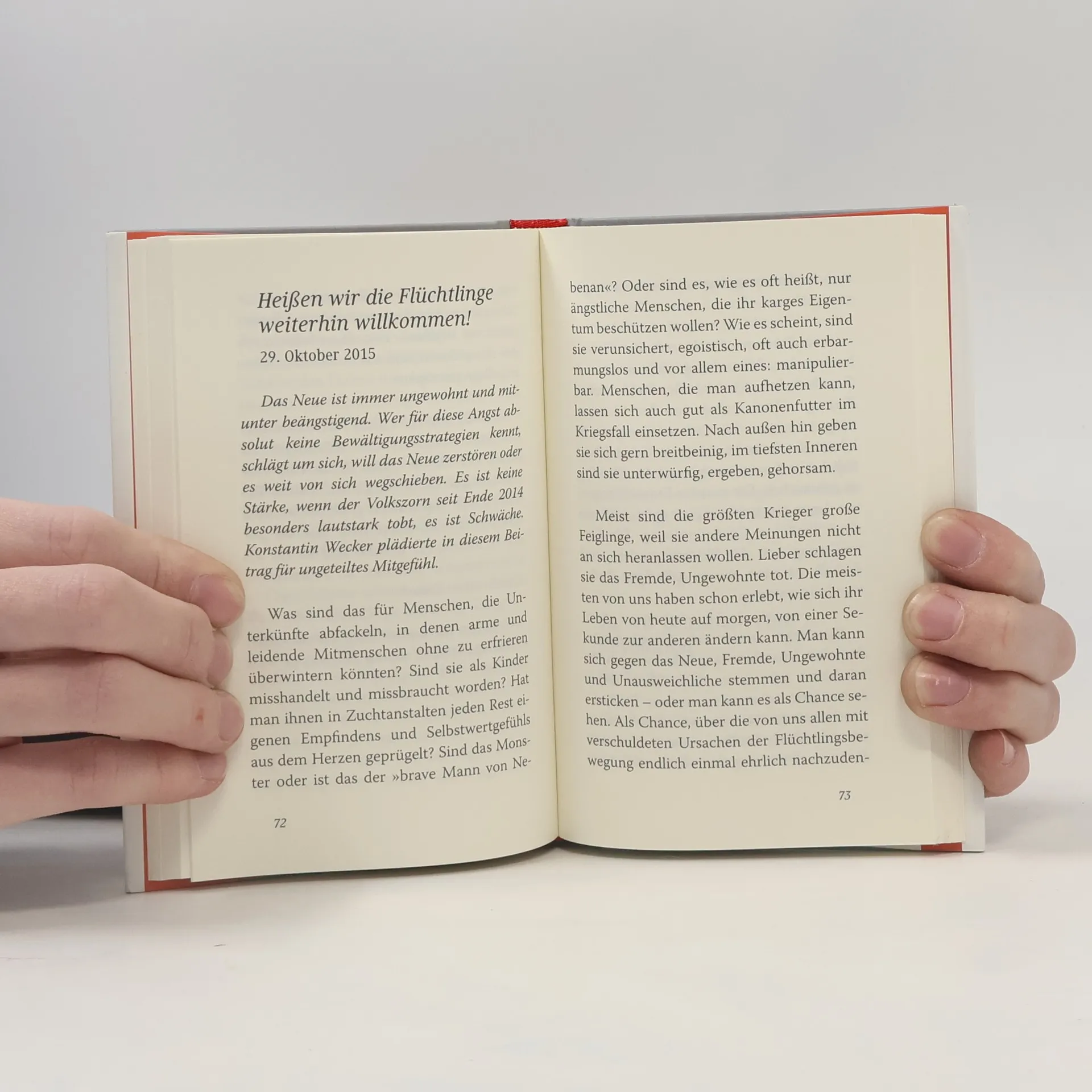 »Ich hab einen Traum: Wir öffnen die Grenzen und lassen alle herein.« Wie nur wenige deutsche Künstler positionierte sich Konstantin Wecker in der Flüchtlingsfrage mit seinem Lied und vielen öffentlichen Statements klar für eine Willkommenskultur. Dafür musste er viel Häme einstecken, er sei »naiv« und ein »Gutmensch«. Doch für ihn zählen, am konkreten Einzelschicksal gemessen, nur Mitgefühl und tätige Hilfe. Hinter dem »Zahlenmaterial« sieht Wecker immer den Menschen. Seine brillanten, für dieses brisante Buch geschriebenen Texte sind auch Zeugnisse eines lebenslangen Widerstands gegen Rechtsradikalismus und Rassismus, berühren Zeitthemen wie Kriegspolitik und ein ungerechtes Weltwirtschaftssystem, in dem der Liedermacher eine wesentliche Ursache für Flucht sieht. Konstantin Weckers Texte zeugen von einem wachen Geist, der sich das Weltgeschehen nahe gehen lässt ― argumentierend, beschwörend, manchmal provozierend im Sinne eines radikalen Utopismus der Menschlichkeit: »Denken wir mit dem Herzen. Besiegen wir den Hass durch Zärtlichkeit.«