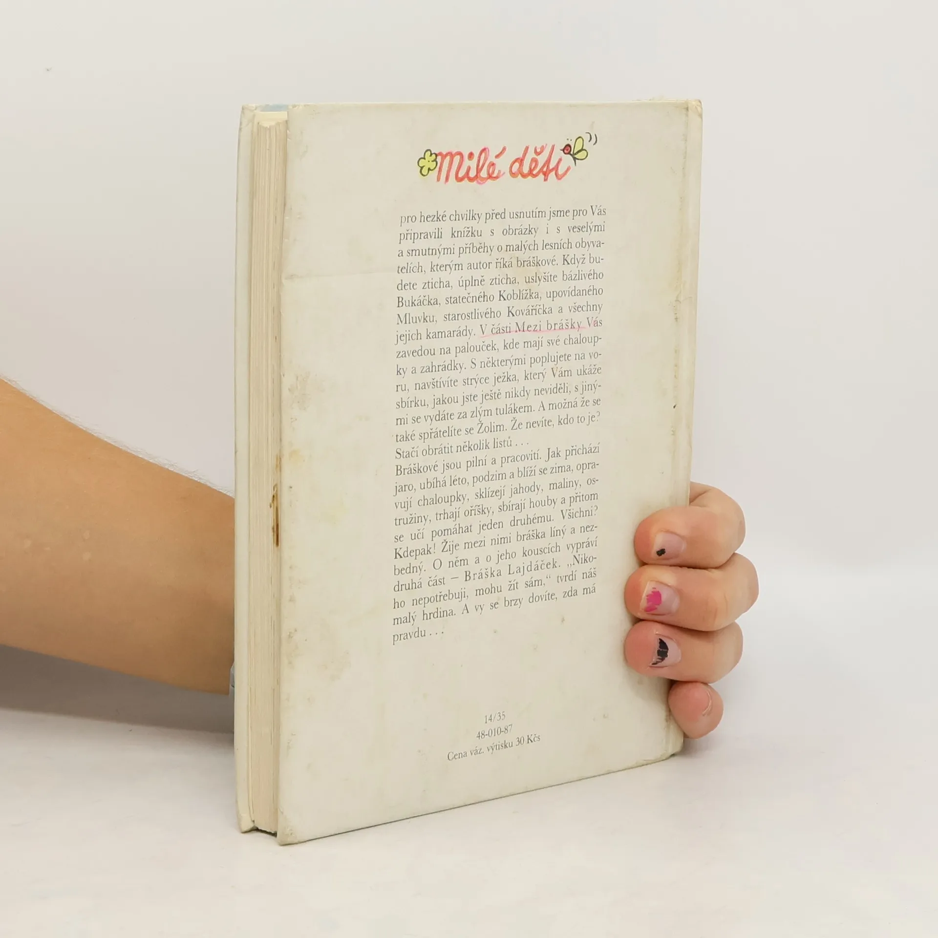 Pohádkové vyprávění pro nejmenší děti, založené na imaginárním světě malých človíčků - brášků, kteří žíjí mírumilovně mezi obyvateli lesa. Oba světy se prolínají, bráškové i zvířátka prožívají nejrůznější příhody a vzájemně si pomáhají. Kniha obsahuje 2 knížky:Mezi brášky - Bráška Lajdáček.