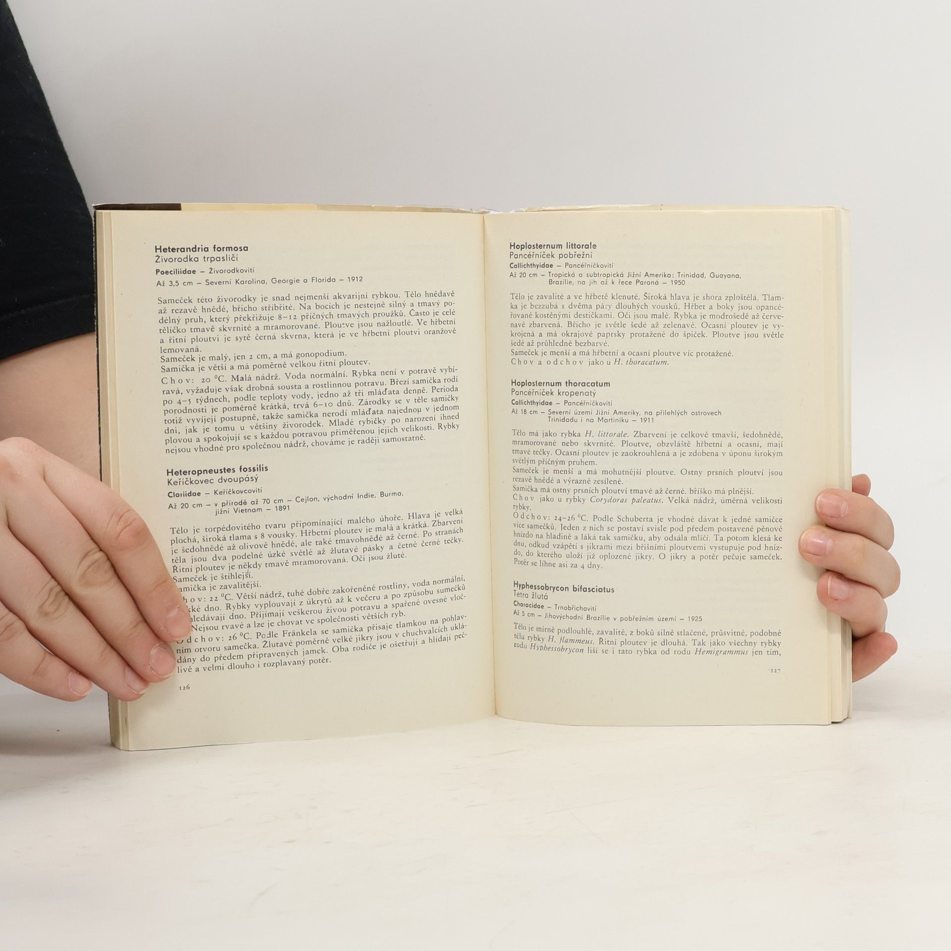 Při popisu jednotlivých druhů akvarijních ryb uvádí autor kromě latinského a českého názvu i příslušnou čeleď, maximální velikost, místo původu, rok dovozu do Evropy, popis ryby, její chov a odchov. Publikace je uvedenavšeobecnou statí o chovu akvarijních ryb, jejich krmení apod. 8. upravené vydání.
