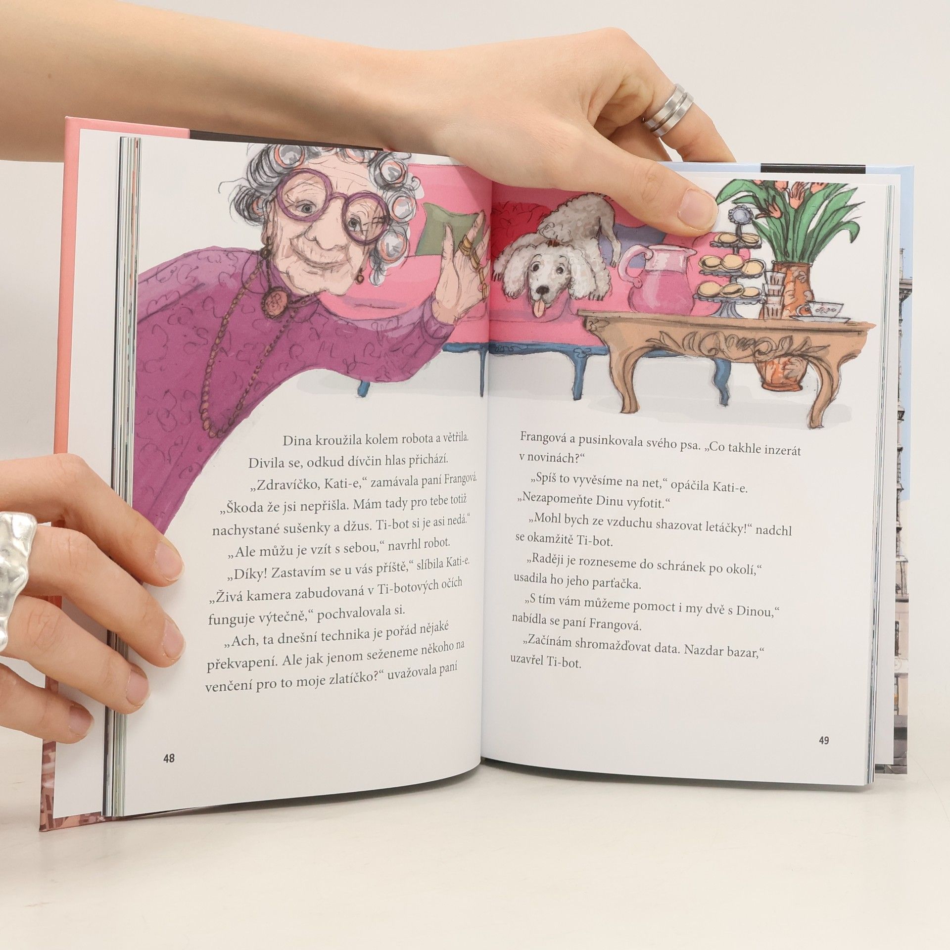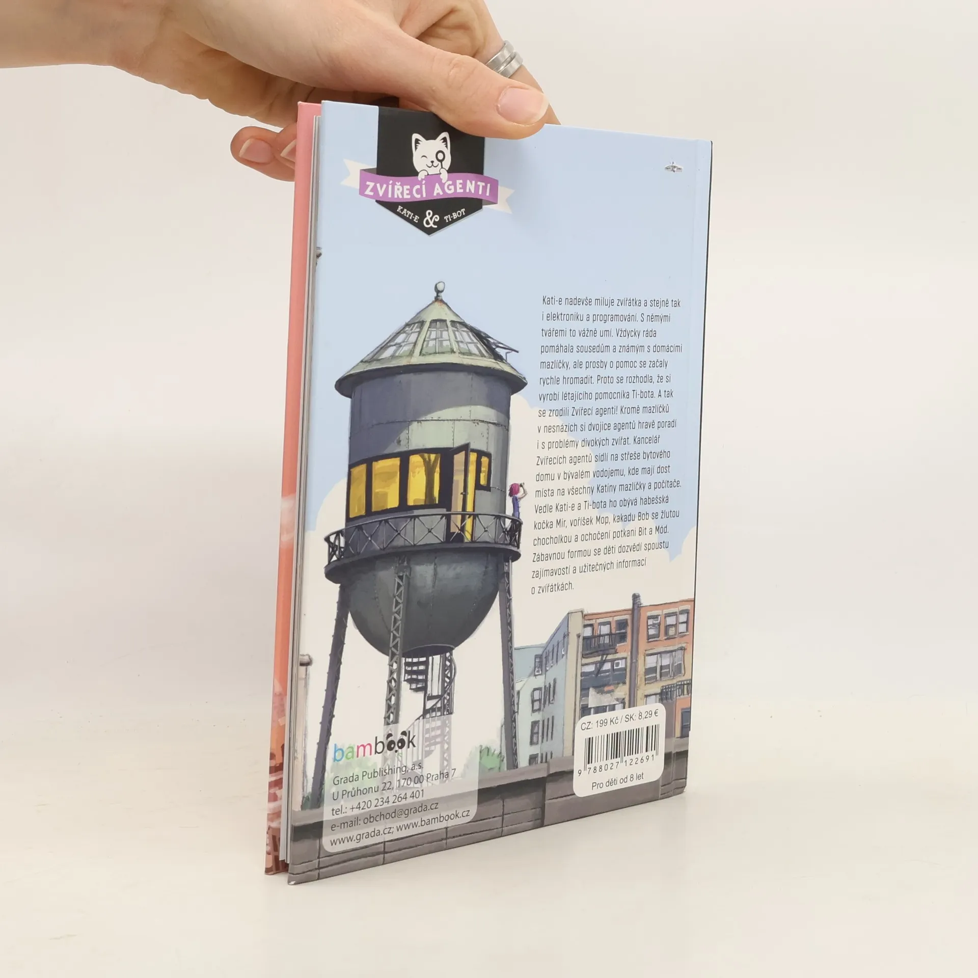 Kati-e nadevše miluje zvířátka a stejně tak i elektroniku a programování. S němými tvářemi to vážně umí. Vždycky ráda pomáhala sousedům a známým s domácími mazlíčky, ale prosby o pomoc se začaly rychle hromadit. Proto se rozhodla, že si vyrobí létajícího pomocníka Ti-bota. A tak se zrodili Zvířecí agenti! Kromě mazlíčků v nesnázích si dvojice agentů hravě poradí i s problémy divokých zvířat. Kancelář Zvířecích agentů sídlí na střeše bytového domu v bývalém vodojemu, kde mají dost místa na všechny Katiny mazlíčky a počítače. Vedle Kati-e a Ti-bota ho obývá habešská kočka Mir, voříšek Mop, kakadu Bob se žlutou chocholkou a ochočení potkani Bit a Mód. Zábavnou formou se děti dozvědí spoustu zajímavostí a užitečných informací o zvířátkách.