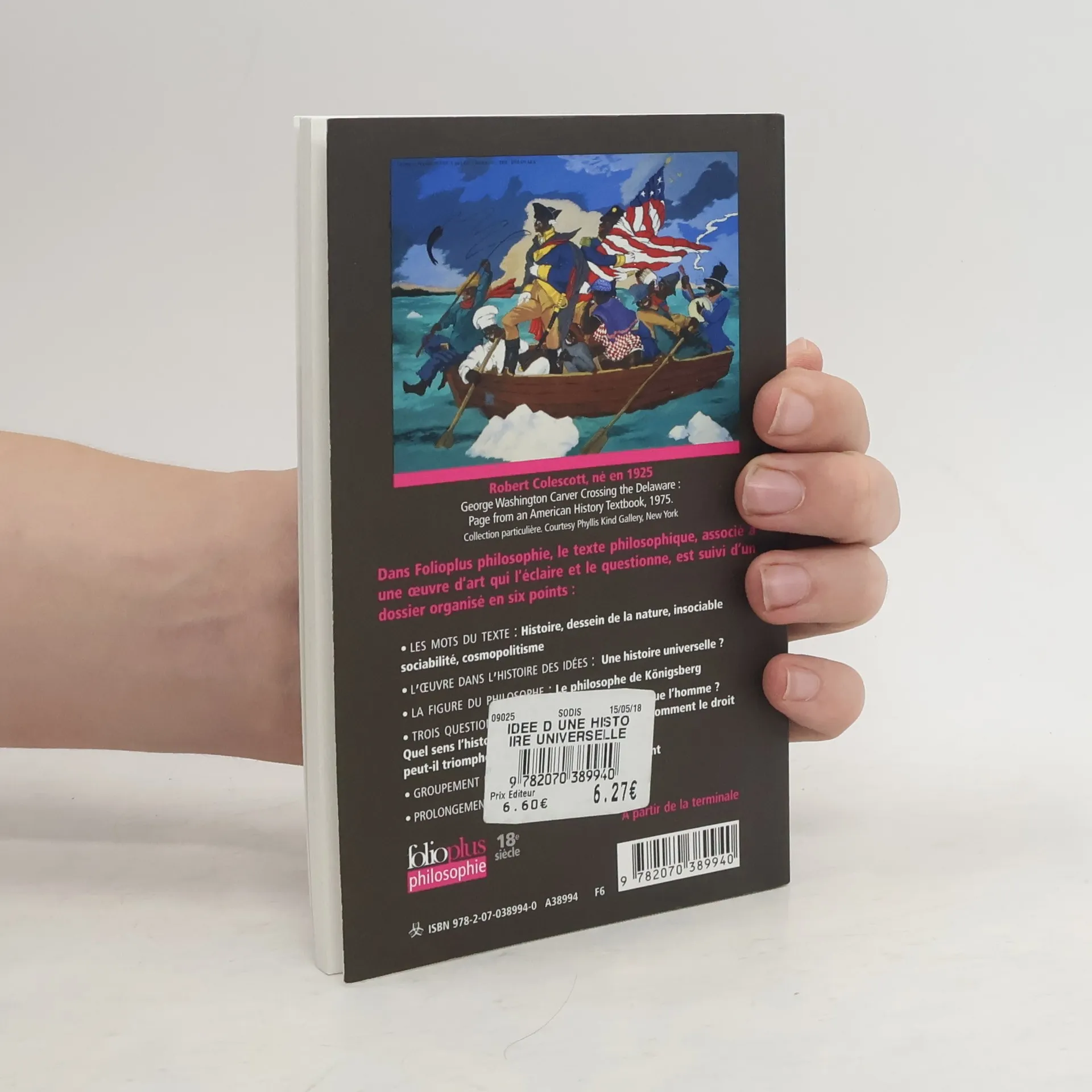 Dans Folioplus philosophie, le texte philosophique, associé à une oeuvre d'art qui l'éclaire et le questionne, est suivi d'un dossier organisé en six point : " Les mots du texte " : Histoire, dessein de la nature, insociable sociabilité, cosmopolitisme. " L'oeuvre dans l'histoire des idées " : Une histoire universelle?. " La figure du philosophe " : Le philosophe de Kônigsberg. " Trois questions posées au texte " : Qu'est-ce que l'homme ? Quel sens l'histoire peut-elle avoir pour nous ? Comment le droit peut-il triompher ?. " Groupement de textes " : Le sens de l'événement. " Prolongements ".