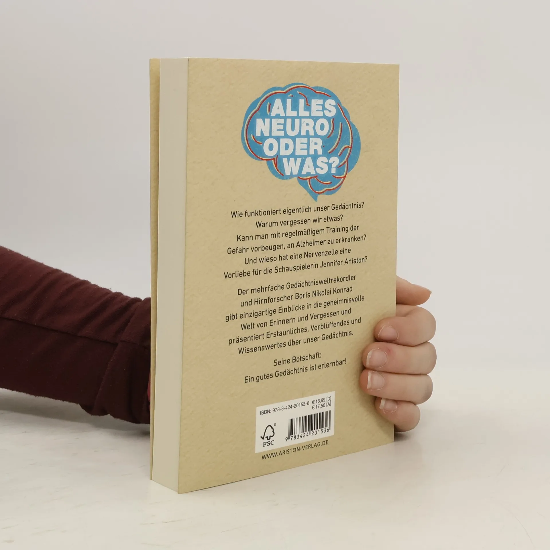 Alles neuro oder was? Warum vergessen wir etwas? Und erinnern uns nur, wenn wir dorthin zurückgehen, wo es uns eingefallen ist? Warum erinnern sich alte Menschen präzise an weit Zurückliegendes – aber nicht an gestern? Kann man mit regelmäßigem Gedächtnis-Training der Gefahr vorbeugen, an Alzheimer zu erkranken? Und wieso hat eine Nervenzelle eine Vorliebe für die Schauspielerin Jennifer Aniston? Der mehrfache Gedächtnisweltmeister und Hirnforscher Boris Nikolai Konrad gibt einzigartige Einblicke in die geheimnisvolle Welt von Erinnern und Vergessen und präsentiert Erstaunliches, Verblüffendes und Wissenswertes über unser Gedächtnis. Seine Botschaft: Ein gutes Gedächtnis ist erlernbar!
