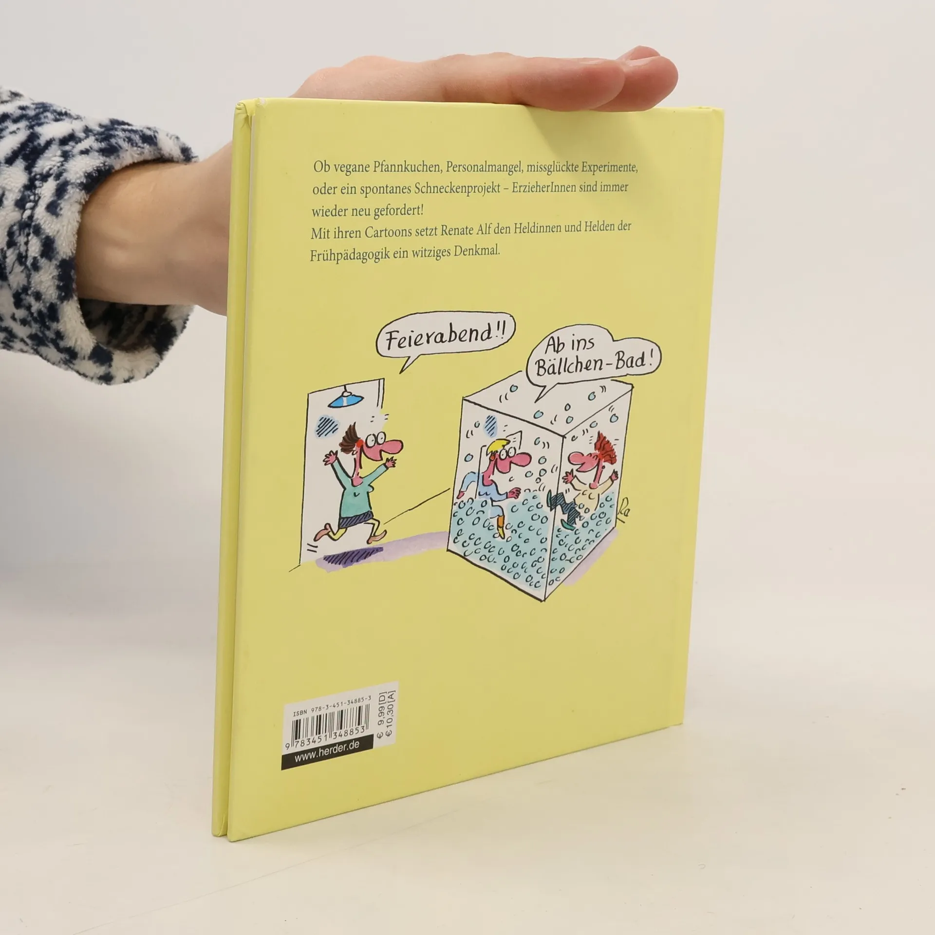 Ob vegane Pfannkuchen, Personalmangel, missglückte Experimente oder ein spontanes Schneckenprojekt – Erzieher und Erzieherinnen sind immer wieder neu gefordert! Mit ihren Cartoons setzt Renate Alf den Heldinnen und Helden der Frühpädagogik ein witziges Denkmal.