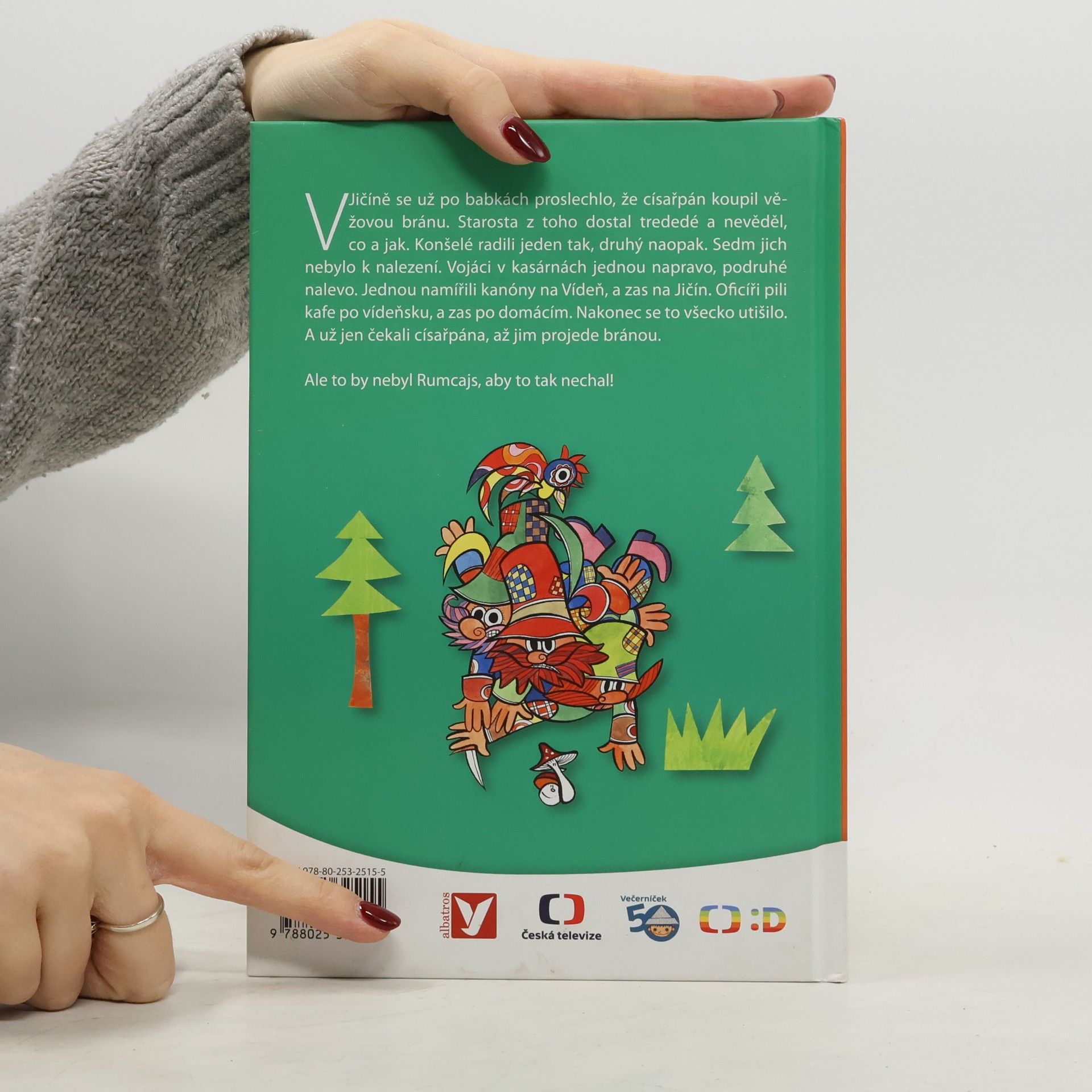 V Jičíně se už po babkách proslechlo, že císařpán koupil věžovou bránu. Starosta z toho dostal trededé a nevěděl, co a jak. Konšelé radili jeden tak, druhý naopak. Sedm jich nebylo k nalezení. Vojáci v kasárnách jednou napravo, podruhé nalevo. Jednou namířili kanóny na Vídeň, a zas na Jičín. Oficíři pili kafe po vídeňsku, a zas po domácím. Nakonec se to všecko utišilo. A už jen čekali císařpána, až jim projede bránou. Ale to by nebyl Rumcajs, aby to tak nechal!