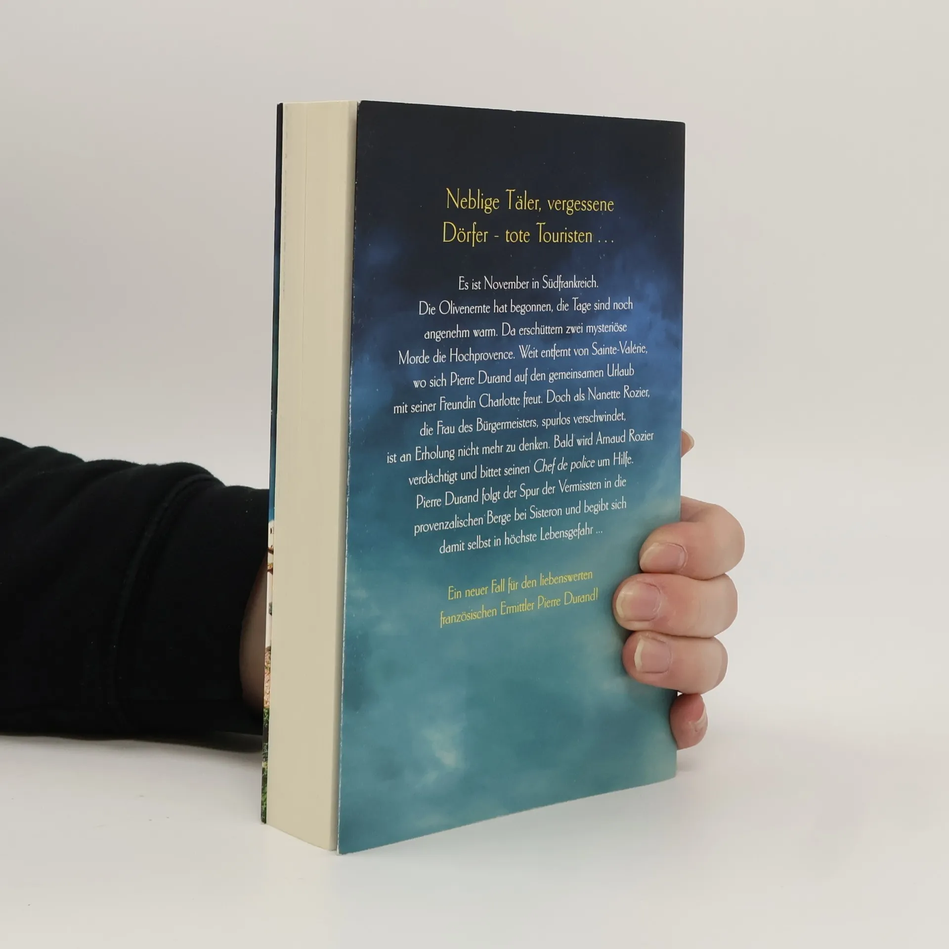 Neblige Täler, vergessene Dörfer – tote Touristen … Es ist November in Südfrankreich. Die Olivenernte hat begonnen, die Tage sind noch angenehm warm. Da erschüttern zwei mysteriöse Morde die Hochprovence. Weit entfernt von Sainte-Valérie, wo sich Pierre Durand auf den gemeinsamen Urlaub mit seiner Freundin Charlotte freut. Doch als Nanette Rozier, die Frau des Bürgermeisters, spurlos verschwindet, ist an Erholung nicht mehr zu denken. Bald wird Arnaud Rozier verdächtigt und bittet seinen Chef de police um Hilfe. Pierre Durand folgt der Spur der Vermissten in die provenzalischen Berge bei Sisteron und begibt sich damit selbst in höchste Lebensgefahr ...
