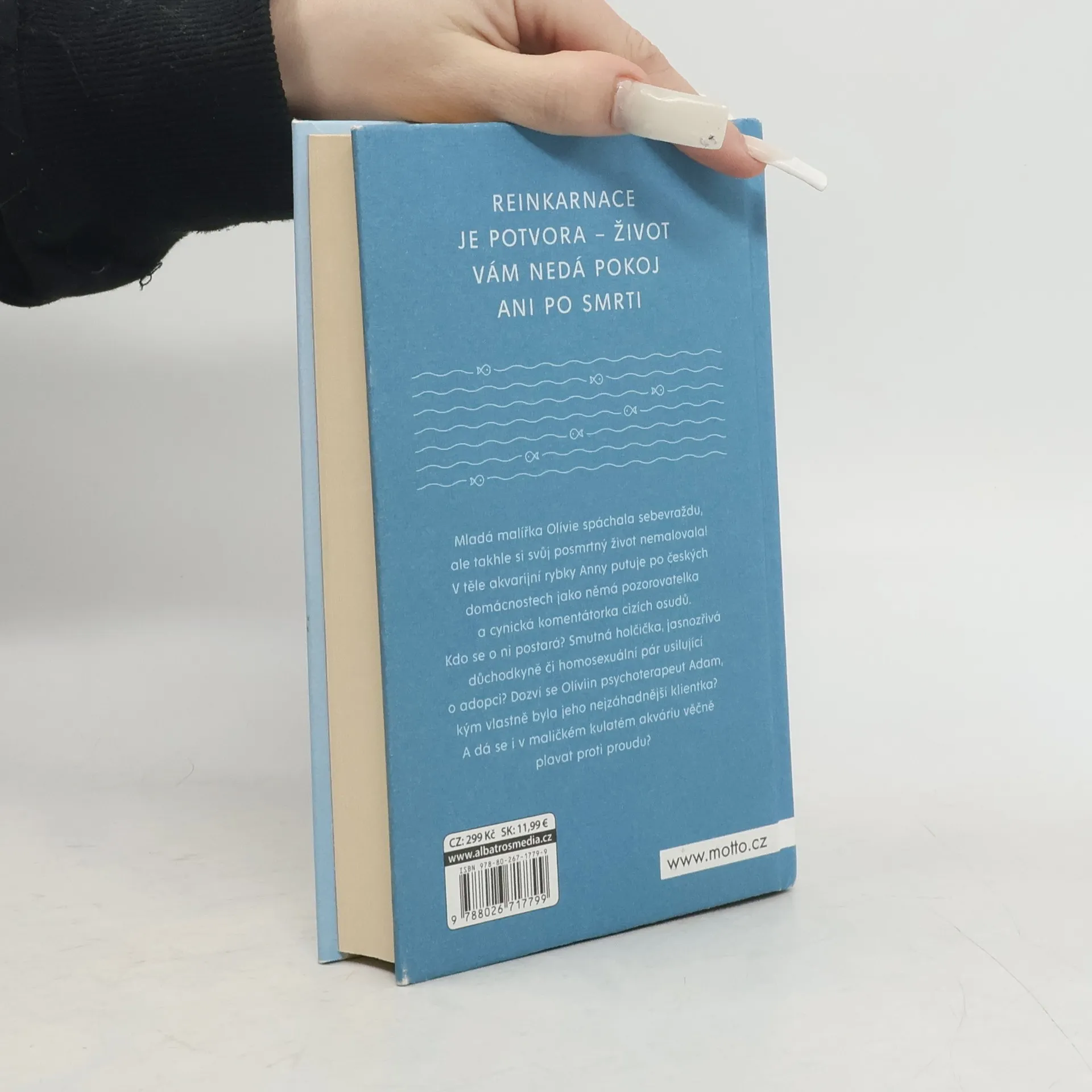 Reinkarnace je potvora – život vám nedá pokoj ani po smrti. Mladá malířka Olívie spáchala sebevraždu, ale takhle si svůj posmrtný život nemalovala! V těle akvarijní rybky Anny putuje po českých domácnostech jako němá pozorovatelka a cynická komentátorka cizích osudů. Kdo se o ni postará? Smutná holčička, jasnozřivá důchodkyně či homosexuální pár usilující o adopci? Dozví se Olíviin psychoterapeut Adam, kým vlastně byla jeho nejzáhadnější klientka? A dá se i v maličkém kulatém akváriu věčně plavat proti proudu?
