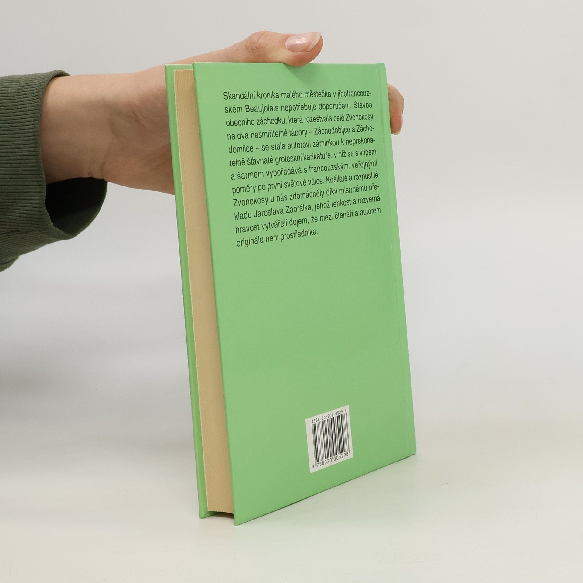 Skandální kronika malého městečka v jihofrancouzském Beaujolais nepotřebuje doporučení. Stavba obecního záchodku, která rozeštvala celé Zvonokosy na dva nesmiřitelné tábory - Záchodobijce a Záchodomilce - se stala autorovi záminkou k nepřekonatelně šťavnaté groteskní karikatuře, v níž se s vtipem a šarmem vypořádává s francouzskými veřejnými poměry po první světové válce. Košilaté a rozpustilé Zvonokosy u nás zdomácněly díky mistrnému překladu Jaroslava Zaorálka, jehož lehkost a rozverná hravost vytvářejí dojem, že mezi čtenáři a autorem originálu není prostředníka.