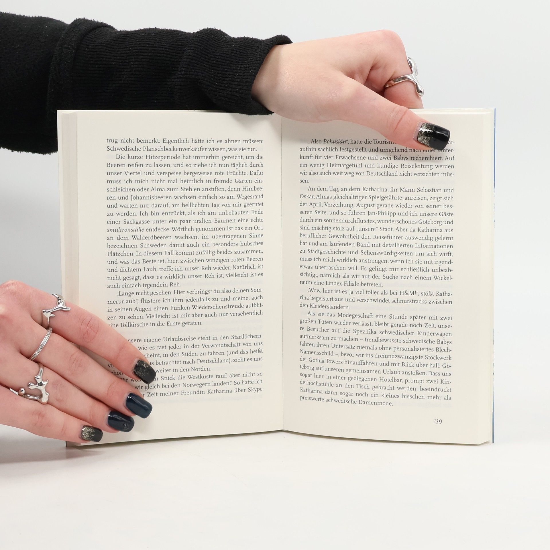 Dutzende graue Volvos und rote Saabs, mehrere blaue Västtrafik-Busse, ein paar Kleintransporter, ein rostiger Gabelstapler und ein LKW mit dem Logo eines Obstgroßhändlers auf der Plane. So ist also der erste Tag des Jahres für die Göteborger: Erledigungen, übervolle Einkaufswagen und zu kleine Parklücken. Lediglich die Mitarbeiter der Straßenreinigung scheinen heute maßloser Untätigkeit zu frönen, statt zur Arbeit zu erscheinen. – Mit Sack und Pack und Baby und Mann hat sich Marie-Helene Steghöfer ins Abenteuer Schweden gestürzt. Zwischen Walpurgisnacht und Mittsommer lernt sie die schwedische Backkunst, entspannte Autofahrer und einen extrem entspannten Elektriker kennen. Wunderbar!