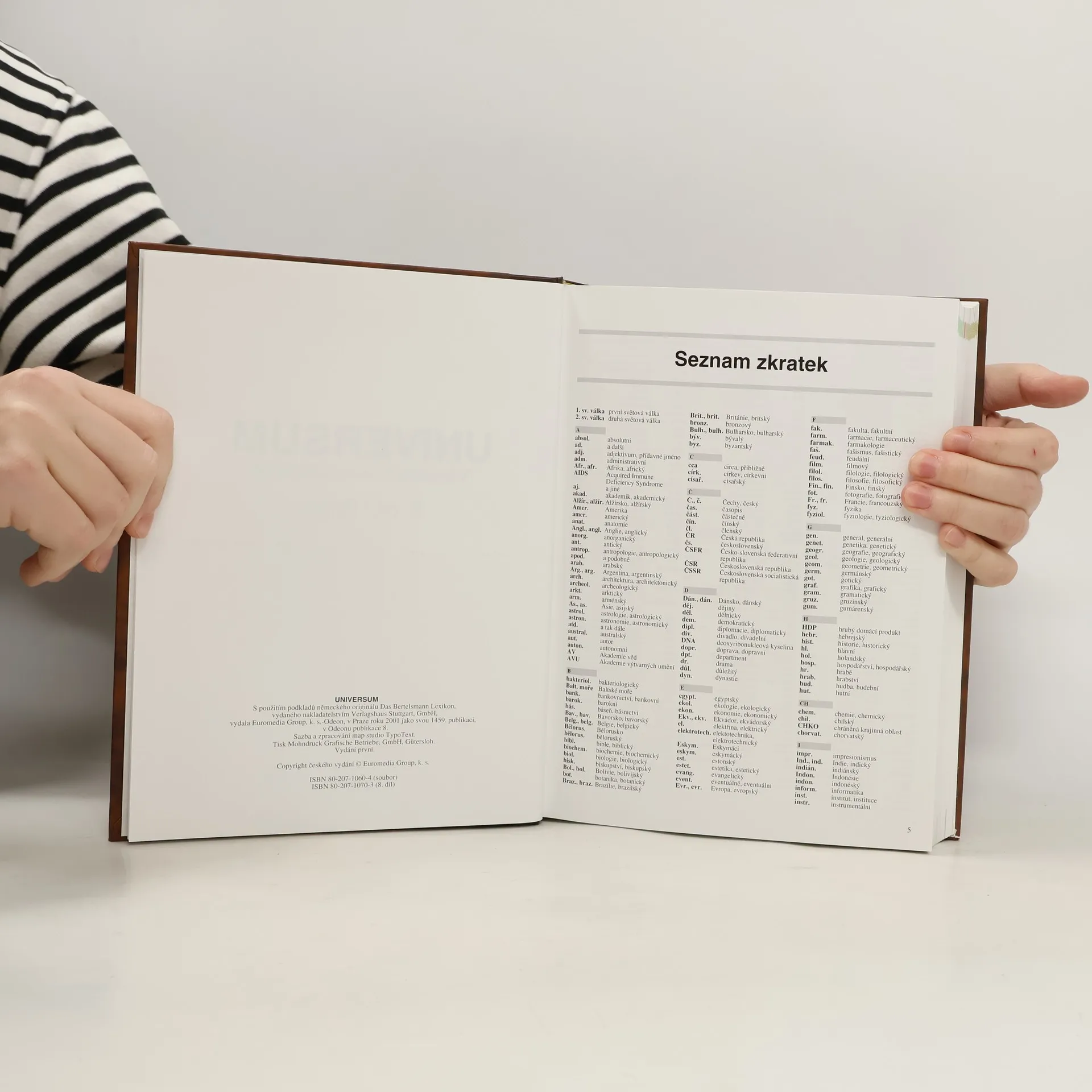 Osmý svazek všeobecné encyklopedie, která v koncentrované podobě skýtá poučení o všech oborech lidské činnosti a o všem, čeho se lidský duch dobral v průběhu tisíciletí. Dílo, edičně prověřené už v několika evropských zemích, obsahuje bohatou databázi, 150 000 hesel doprovázených barevnými vyobrazeními, schématy, grafy a přehlednými tabulkami, důmyslně provázené systémem odkazů. Výchozí materiál z německého originálu byl svěřen do péče cca 350 českých odborníků a lektorů, uzpůsoben pro českého uživatele a doplněn o desettisíce hesel z českých, ale i středoevropských a východoevropských reálii ze všech oborů.