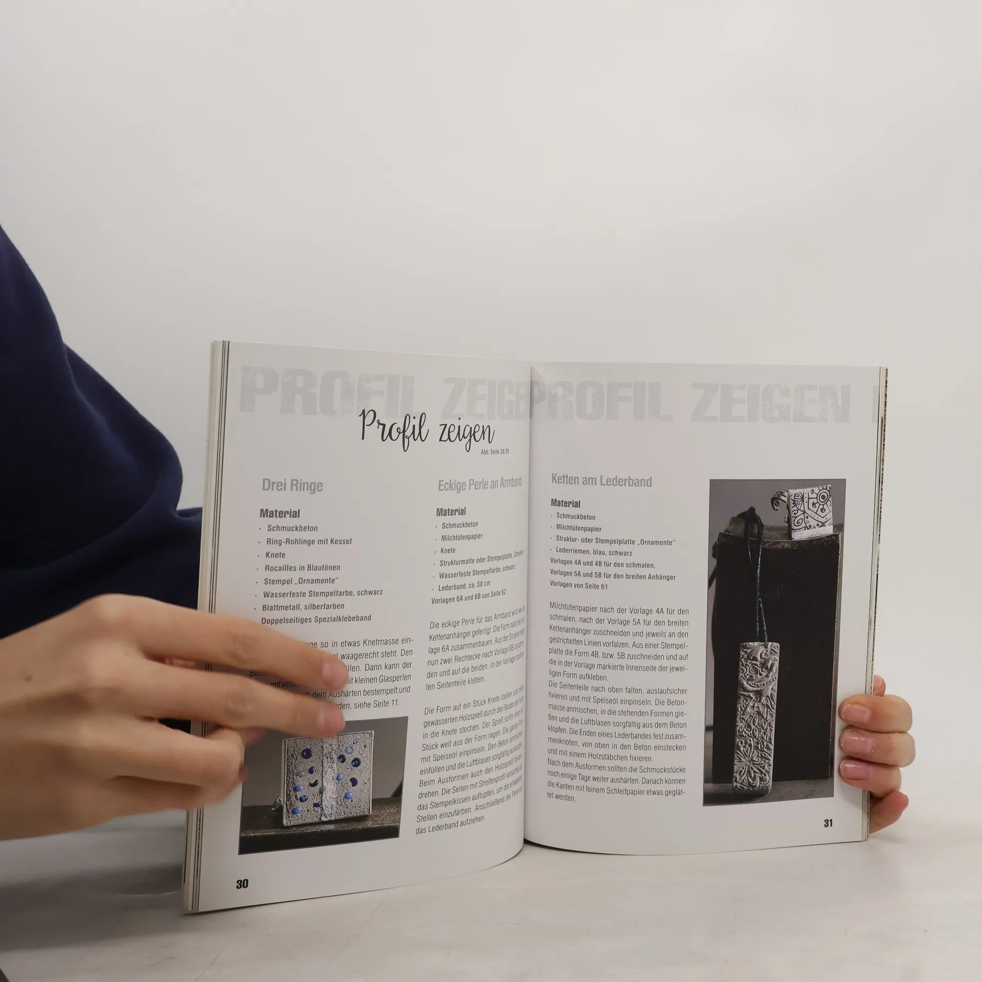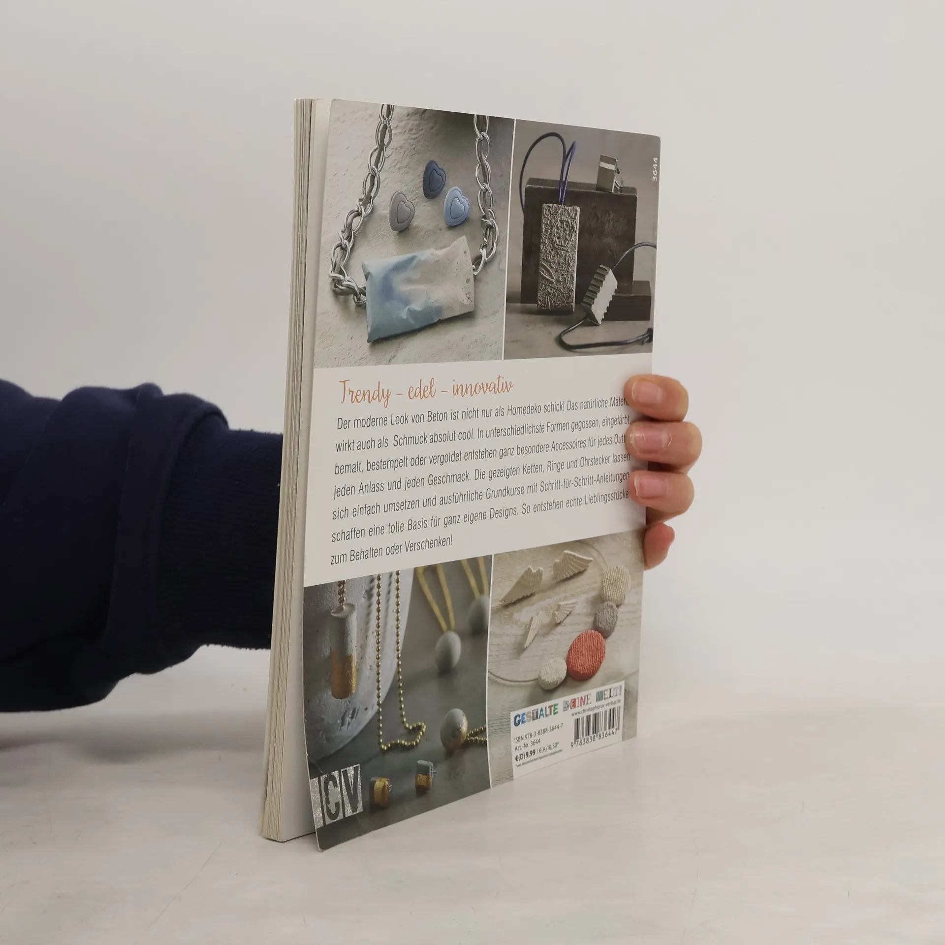 Trendy - edel - innovativ Der moderne Look von Beton ist nicht nur als Homedeko schick! Auch als Schmuck wirkt das natürliche Material absolut cool. In unterschiedlichste Formen gegossen, eingefärbt, bemalt, bestempelt oder vergoldet entstehen ganz besondere Accessoires für jedes Outfit, jeden Anlass und jeden Geschmack. Die gezeigten Ketten, Ringe und Ohrstecker lassen sich einfach umsetzen und ausführliche Grundkurse mit Schritt-für-Schritt-Anleitungen schaffen eine tolle Basis für ganz eigene Designs. So entstehen echte Lieblingsstücke zum Behalten oder Verschenken!