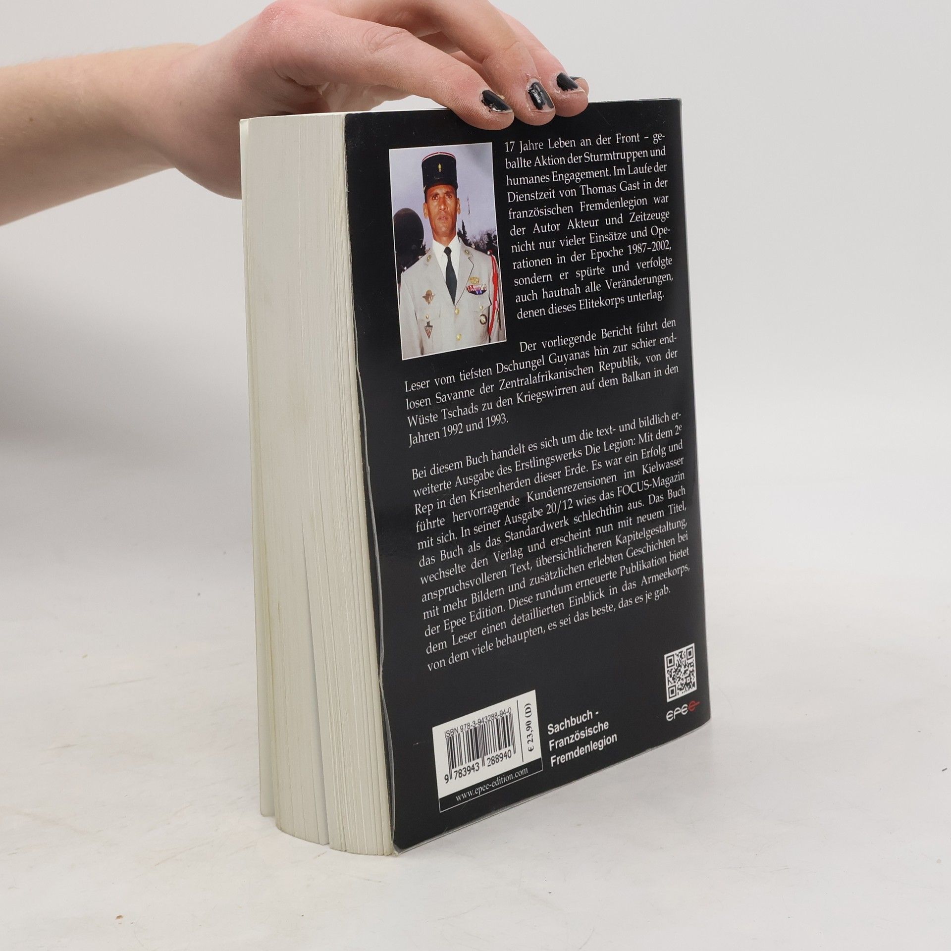 17 Jahre Leben an der Front – geballte Aktion der Sturmtruppen und humanes Engagement. Im Laufe der Dienstzeit von Thomas Gast in der französischen Fremdenlegion war der Autor Akteur und Zeitzeuge nicht nur vieler Einsätze und Operationen in der Epoche zwischen 1987 und 2002, sondern er spürte und verfolgte auch hautnah alle Veränderungen, denen dieses Elitekorps unterlag. Der vorliegende Bericht führt den Leser vom tiefsten Dschungel Guyanas hin zur schier endlosen Savanne der Zentralafrikanischen Republik, von der Wüste Tschads zu den Kriegswirren auf dem Balkan in den Jahren 1992 und 1993. Und eine Erkenntnis blieb und bleibt bestehen: Die Legende Legion ist immer noch intakt. Bei diesem Buch handelt es sich um die text- und bildlich erweiterte Ausgabe des Erstlingswerks „Die Legion: Mit dem 2e Rep in den Krisenherden dieser Erde“. Es war ein Erfolg und führte hervorragende Kundenrezensionen im Kielwasser mit sich. In seiner Ausgabe 20/12 wies das FOCUS-Magazin das Buch als das Standardwerk schlechthin aus. Das Buch wechselte den Verlag und erscheint nun mit neuem Titel, einem anspruchsvolleren Text, einer übersichtlicheren Kapitelgestaltung, mit mehr Bildern und zusätzlichen erlebten Geschichten bei der Epee Edition. Diese rundum erneuerte Publikation bietet dem Leser einen detaillierten Einblick in das Armeekorps, von dem viele behaupten, es sei das beste, das es je gab.
