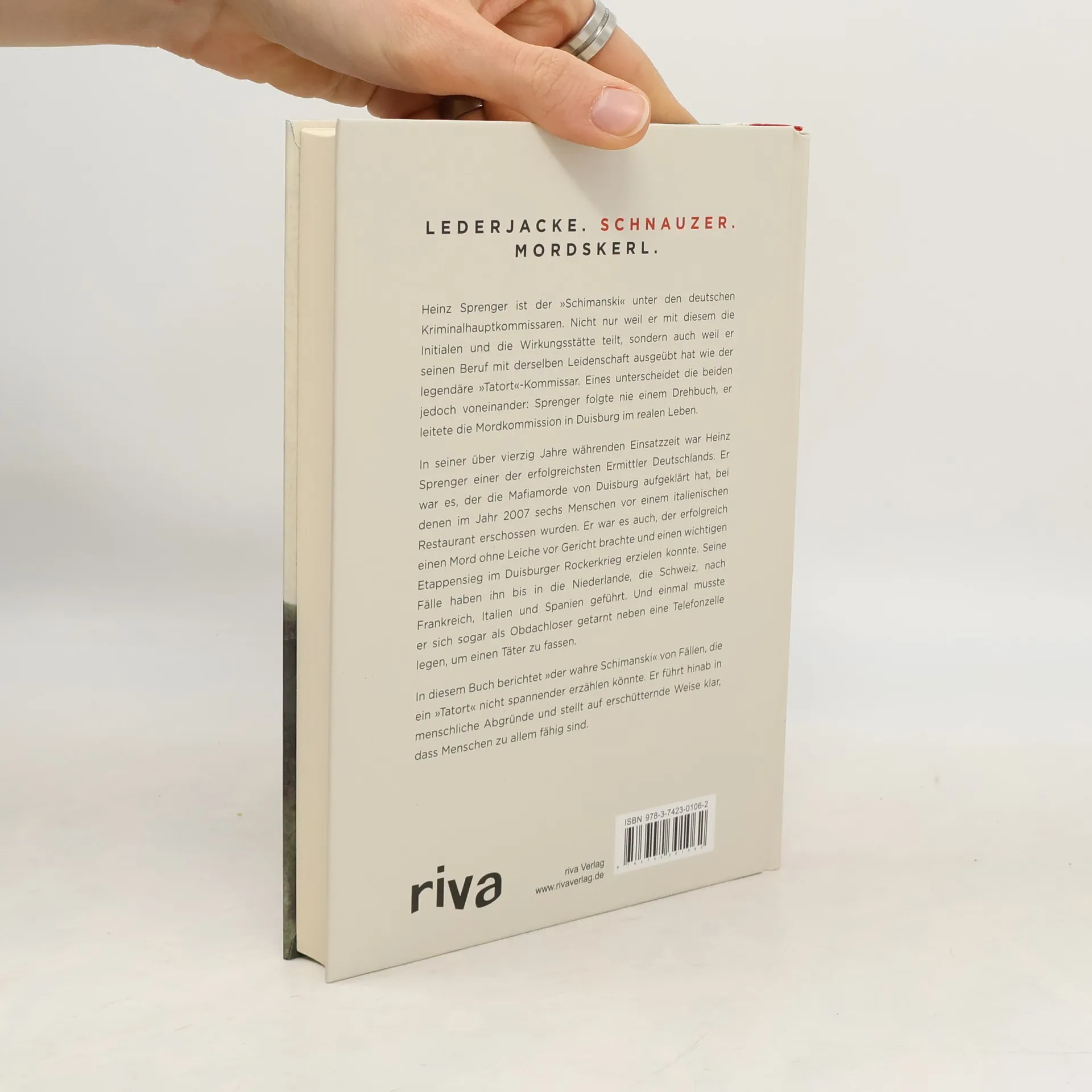 L E D E R J A C K E . S C H N A U Z E R . M O R D S K E R L . Heinz Sprenger ist der »Schimanski« unter den deutschen Kriminalhauptkommissaren. Nicht nur weil er mit diesem die Initialen und die Wirkungsstätte teilt, sondern auch weil er seinen Beruf mit derselben Leidenschaft ausgeübt hat wie der legendäre »Tatort«-Kommissar. Eines unterscheidet die beiden jedoch voneinander: Sprenger folgte nie einem Drehbuch, er leitete die Mordkommission in Duisburg im realen Leben. In seiner über vierzig Jahre währenden Einsatzzeit war Heinz Sprenger einer der erfolgreichsten Ermittler Deutschlands. Er war es, der die Mafiamorde von Duisburg aufgeklärt hat, bei denen im Jahr 2007 sechs Menschen vor einem italienischen Restaurant erschossen wurden. Er war es auch, der erfolgreich einen Mord ohne Leiche vor Gericht brachte und einen wichtigen Etappensieg im Duisburger Rockerkrieg erzielen konnte. Seine Fälle haben ihn bis in die Niederlande, die Schweiz, nach Frankreich, Italien und Spanien geführt. Und einmal musste er sich sogar als Obdachloser getarnt neben eine Telefonzelle legen, um einen Täter zu fassen. In diesem Buch berichtet »der wahre Schimanski« von Fällen, die ein »Tatort« nicht spannender erzählen könnte. Er führt hinab in menschliche Abgründe und stellt auf erschütternde Weise klar, dass Menschen zu allem fähig sind.
