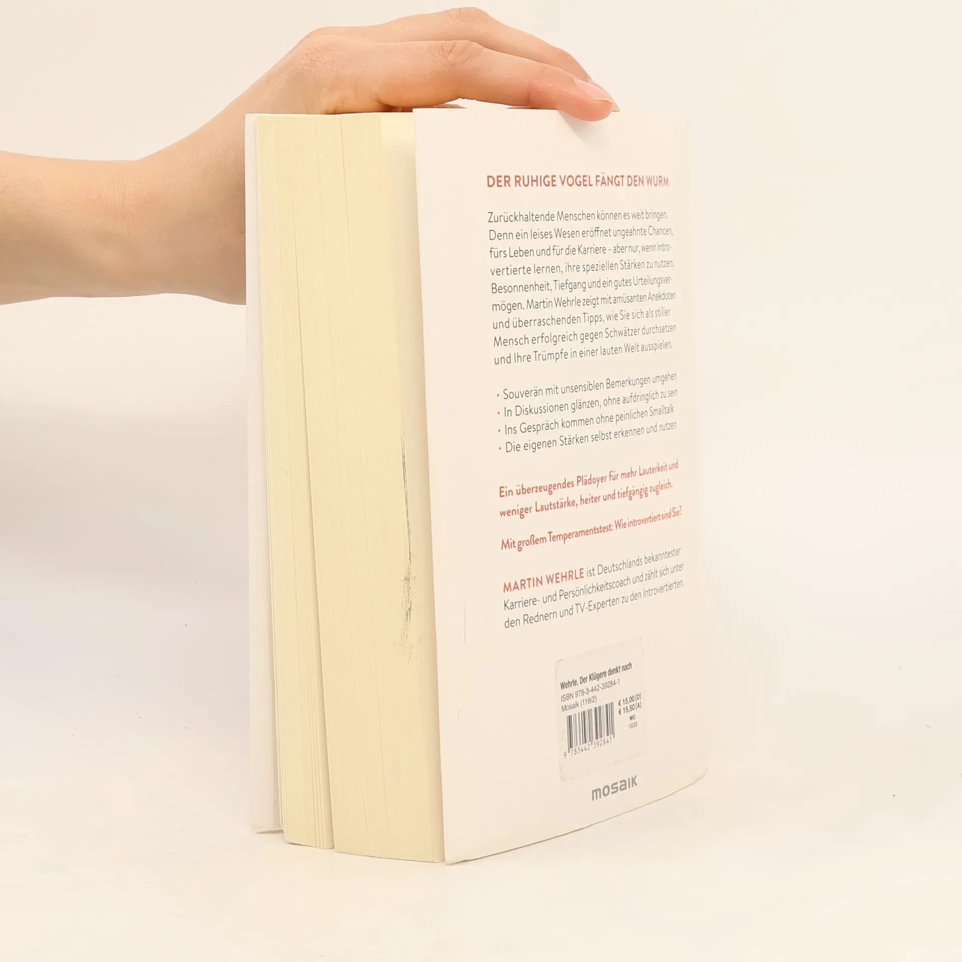 Der stille Vogel fängt den WurmMartin Wehrle bringt es ans Licht: Das Zeitalter der Zurückhaltenden hat begonnen. Ein leises Wesen eröffnet ungeahnte Chancen, fürs Leben und für die Karriere – aber nur, wenn Introvertierte ihre speziellen Stärken nutzen: Besonnenheit, Tiefgang, ein gutes Urteilsvermögen. Martin Wehrle zeigt mit amüsanten Anekdoten und überraschenden Tipps, wie stille Menschen ihre Trümpfe in einer lauten Welt ausspielen. Ein überzeugendes Plädoyer für mehr Lauterkeit und weniger Lautstärke, heiter und tiefgängig zugleich.