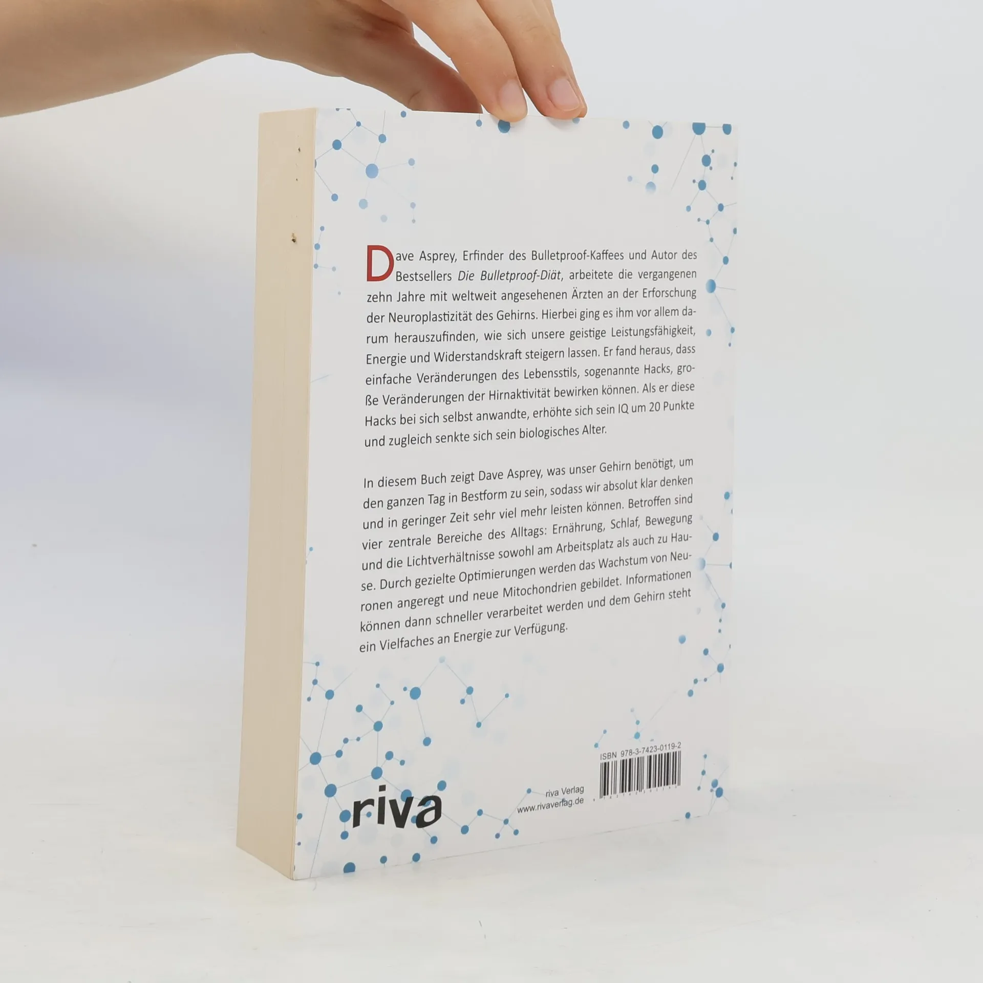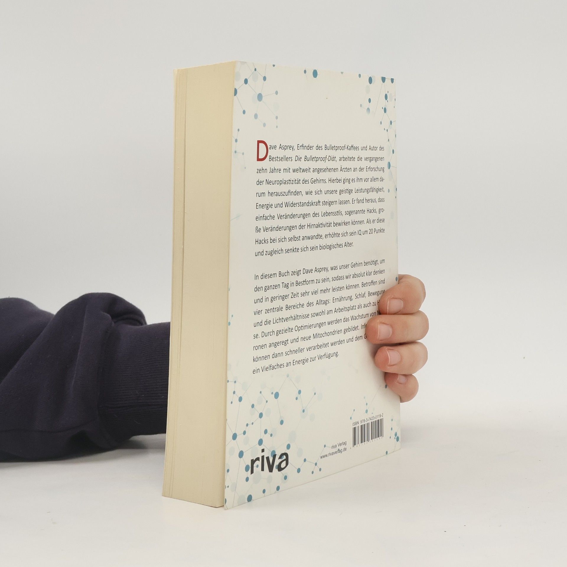 Dave Asprey, Erfinder des Bulletproof-Kaffees und Autor des Bestsellers Die Bulletproof-Diät, arbeitete die vergangenen zehn Jahre mit weltweit angesehenen Ärzten an der Erforschung der Neuroplastizität des Gehirns. Hierbei ging es ihm vor allem darum herauszufinden, wie sich unsere geistige Leistungsfähigkeit, Energie und Widerstandskraft steigern lassen. Er fand heraus, dass einfache Veränderungen des Lebensstils, sogenannte „Hacks“, große Veränderungen der Hirnaktivität bewirken können. Als er diese Hacks bei sich selbst anwandte, erhöhte sich sein IQ um 20 Punkte und zugleich senkte sich sein biologisches Alter. In seinem neuen Buch Hirntuning zeigt Asprey, was unser Gehirn benötigt, um den ganzen Tag in Bestform zu sein, sodass wir absolut klar denken und in geringer Zeit sehr viel mehr leisten können. Betroffen sind vier zentrale Bereiche des Alltags: Ernährung, Schlaf, Bewegung und die Beleuchtung sowohl am Arbeitsplatz als auch zu Hause. Werden hier gezielte Optimierungen vorgenommen, werden das Wachstum von Neuronen angeregt und neue Mitochondrien gebildet. Informationen können dann schneller verarbeitet werden und dem Gehirn steht ein Vielfaches an Energie zur Verfügung.