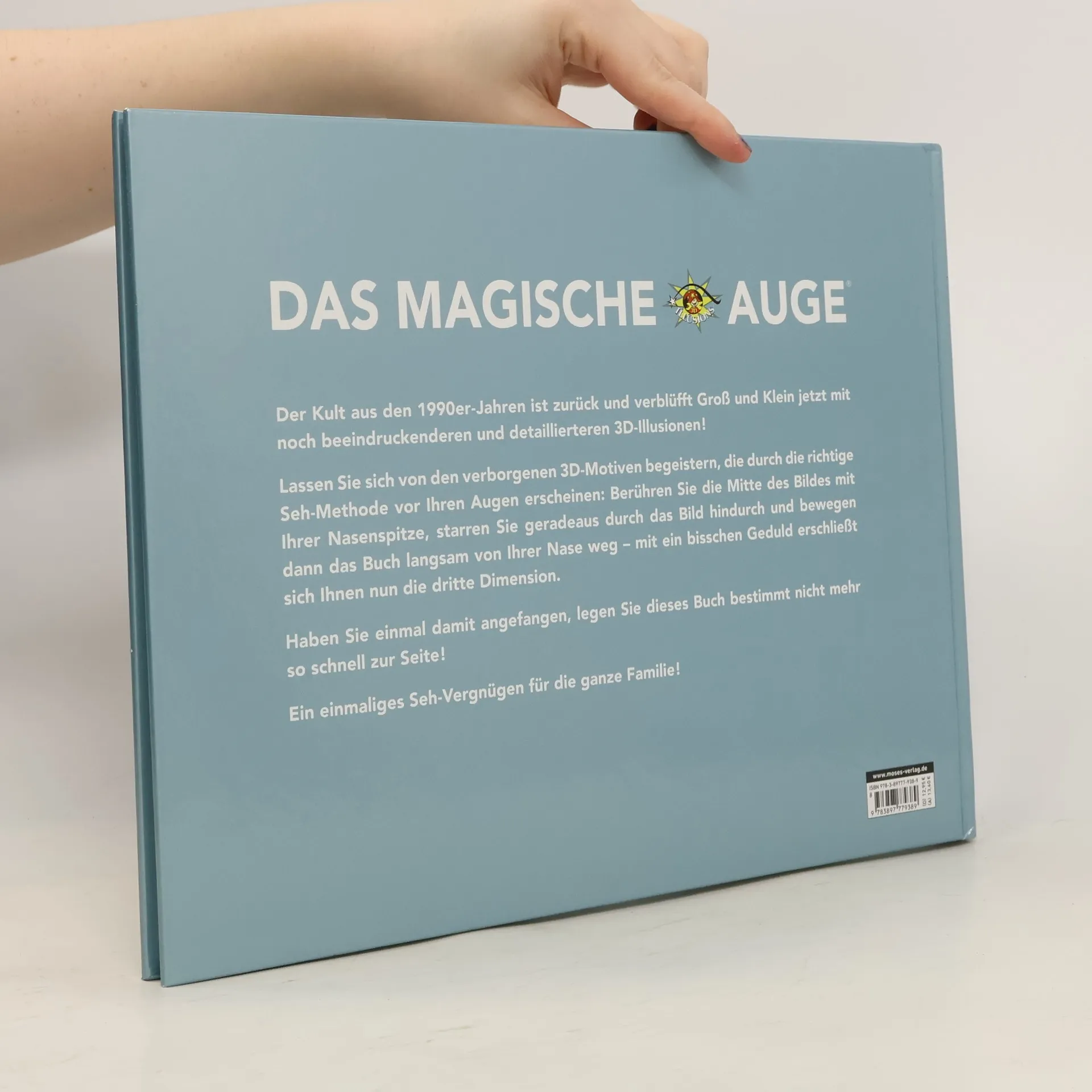 Entdecken Sie optische Illusionen in der dritten Dimension! Der Riesenerfolg ist zurück: Das magische Auge verblüfft die Fans der optischen Illusionen erneut! Wie funktionieren die optischen Illusionen noch gleich? Nasenspitze ganz nah auf das Bild platzieren, jetzt ein bisschen geradeaus starren, bis das Bild verschwommen zu sehen ist, nun das Buch langsam von der Nasenspitze entfernen und mit ein bisschen Übung erscheint das verborgene Bild. Wenn aus einem zweidimensionalen Bild ein dreidimensionales wird, hat dies nichts mit Hexerei zu tun, sondern mit dem magischen Auge!