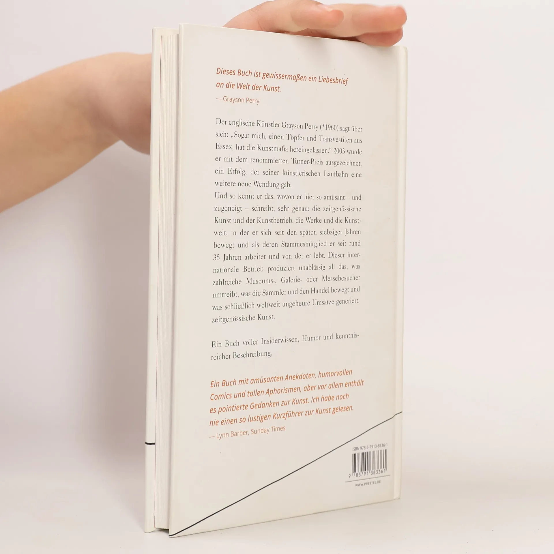 Zeitgenössische Kunst lässt viele Menschen oft ratlos zurück: „Das soll jetzt Kunst sein?“, „Was unterscheidet eigentlich ‚gute‘ von ‚schlechter‘ Kunst?“, „Und wer entscheidet das eigentlich?“ – Der britische Künstler und Exzentriker Grayson Perry stellt sich all diesen Fragen und nimmt die Leser mit auf eine spannende Entdeckungsreise in die Welt der Gegenwartskunst. Basierend auf seinen populären „Reith Lectures“ für die BBC erzählt er als Insider in wunderbar anschaulichem und witzigem Plauderton vom Sinn und Unsinn im internationalen Kunstzirkus. Dabei bietet er einen unterhaltsamen Einstieg in das Thema und überzeugt mit der ihm eigenen Mischung aus Witz, Ironie, klaren Beobachtungen sowie präzisen Fakten. Perrys humorvolle wie augenzwinkernde Zeichnungen runden dieses kurzweilige Buch ab und machen es zu einem idealen Kunstführer durch die zeitgenössische Kunst, ihre Szenen, ihre Spielstätten und das große Rad des Geldes – die ideale Vorbereitung für den nächsten Besuch einer Galerie oder einer Ausstellung!