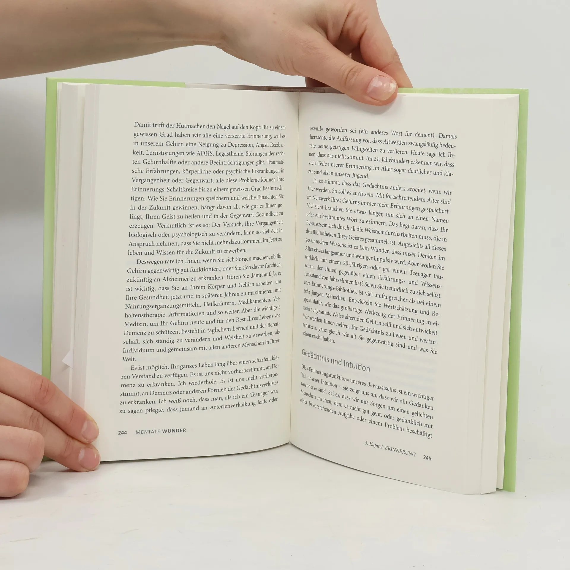 Taschenbuchausgabe des Buches »Mentale Wunder« Eine unablässige Flut von immer neuen Reizen, ein Übermaß an Informationen – kein Wunder, dass unsere mentale Gesundheit immer anfälliger wird. Um sie gezielt zu stärken, haben Louise Hay und Dr. Mona Lisa Schulz eine hochwirksame Heilmethode entwickelt, die Hays berühmte Affirmationen mit moderner, ganzheitlicher Medizin verbindet. Ob bei Ängsten, Traurigkeit, Suchtverhalten, Gedächtnisproblemen oder Essstörungen: Indem wir die positive Kraft unserer Gedanken nutzen und unsere Lebens- und Ernährungsweise optimieren, behalten wir einen klaren Kopf und können glücklicher, entspannter und voller Energie leben!