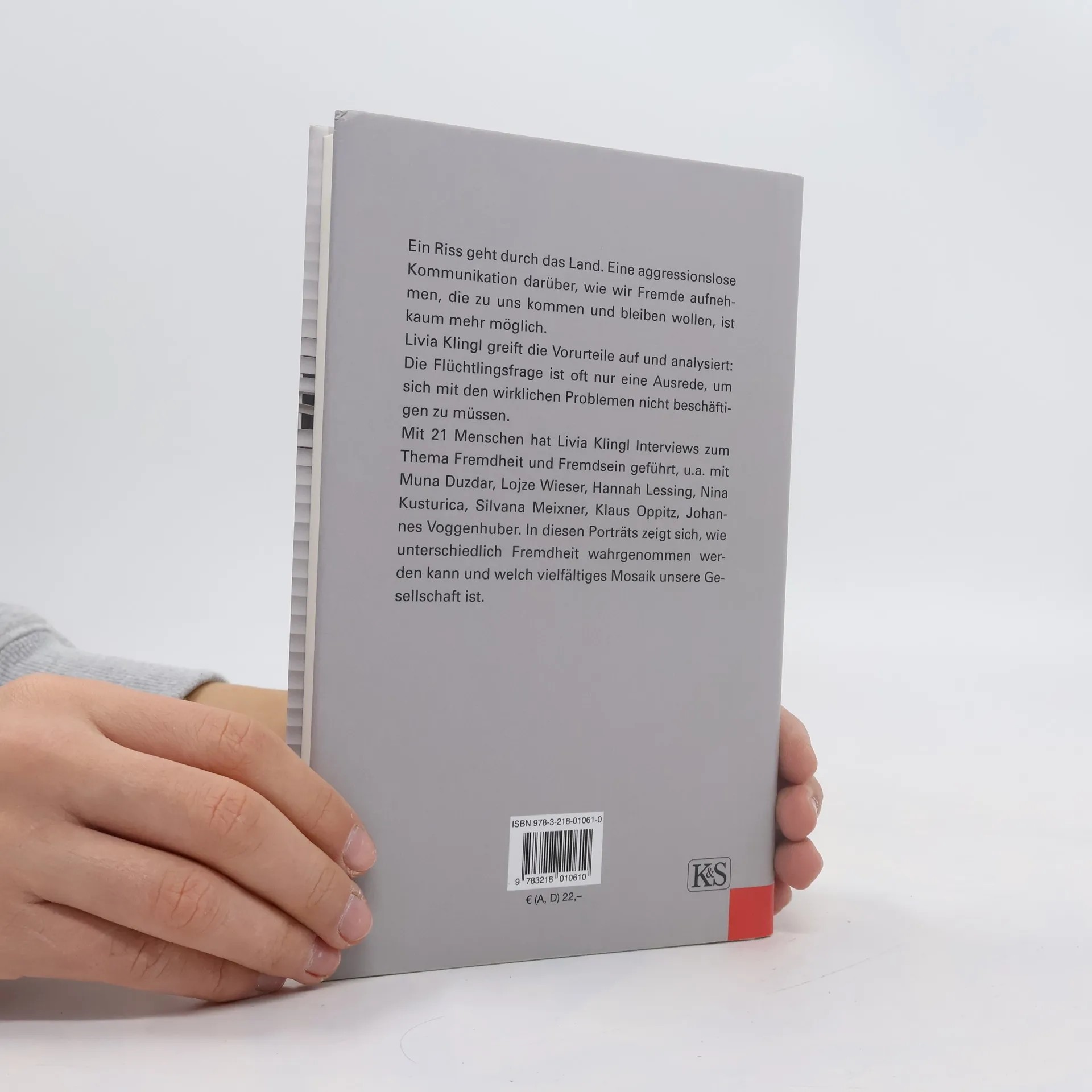 Ein Riss geht durch das Land. Auf der einen Seite stehen jene, die für mehr Miteinander, mehr Solidarität, mehr Offenheit eintreten. Auf der anderen jene, die zurück möchten in die „gute, alte Zeit“, als es noch keine Globalisierung gab, keine Flüchtlinge und keine Angst vor sozialem Abstieg. Die Bruchlinien gehen quer durch die Familien, sogar Freundschaften zerbrechen daran. Warum ist heute eine aggressionslose Kommunikation darüber kaum mehr möglich? Warum werden Flüchtlinge zum Sündenbock gestempelt für alles, was schief läuft in diesem Land? In ihrer Analyse greift Livia Klingl die Vorurteile auf, sortiert sie und zeigt: Die Flüchtlingsfrage ist oft nur eine Ausrede, um sich mit den wirklichen Problemen nicht beschäftigen zu müssen. Mit 21 Menschen hat Livia Klingl Interviews zum Thema Fremdheit und Fremdsein geführt. Entstanden sind 21 Porträts, die zeigen, welch vielfältiges Mosaik unsere Gesellschaft ist. Unter den Interviewten sind: Muna Duzdar, Lojze Wieser, Hannah Lessing, Nina Kusturica, Silvana Meixner, Klaus Oppitz, Johannes Voggenhuber.