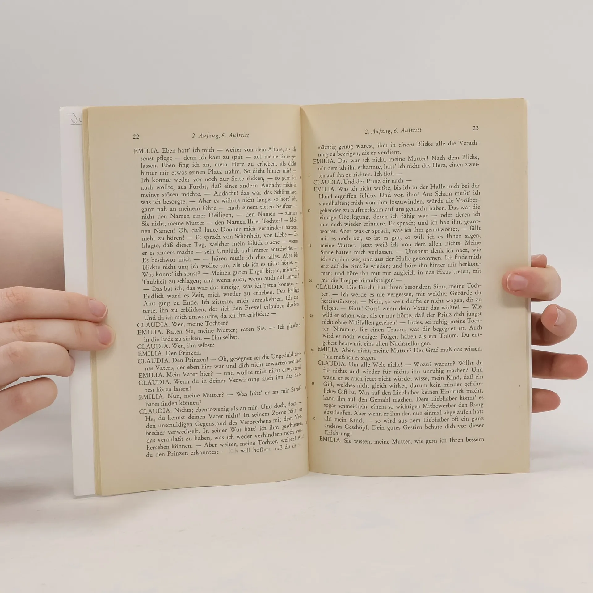 Die bürgerliche Emilia Galotti steht kurz vor ihrer Hochzeit mit dem Grafen Appiani, als sich der Prinz Gonzaga in sie verliebt. Um diese Heirat, die überdies eine Liebesheirat ist, zu verhindern, ist ihm und seinem Diener Marinelli jedes Mittel recht, und so lässt Marinelli das Paar auf dem Wege zur Trauung überfallen. Während Appiani im Kampf tödlich verwundet wird, werden Emilia und ihre Mutter auf Gonzagas Schloss gebracht. Doch Emilia möchte sich lieber das Leben nehmen, als der Verführung des Prinzen zu erliegen und ihre Unschuld zu verlieren. Ihr Vater kommt ihr jedoch zuvor und ersticht seine Tochter. In seinem 1772 vollendeten Drama griff Lessing ein bei Livius überliefertes sagenhaftes Ereignis auf, wonach die bereits verlobte Römerin Virginia von ihrem Vater ermordet wurde, weil er glaubte, sie nur so vor den Nachstellungen des Decemvir Appius Claudius schützen zu können. Neben der Gegenüberstellung der unterschiedlichen Auffassungen von Liebe ist "Emilia Galotti" auch ein politisches Stück: Indem sich die bürgerliche Familie Galotti dem Willen des Prinzen widersetzt, rebelliert sie gegen den Adel und hat die Moral auf ihrer Seite. Daher wird das Stück heute auch als Drama der bürgerlichen Emanzipation verstanden.