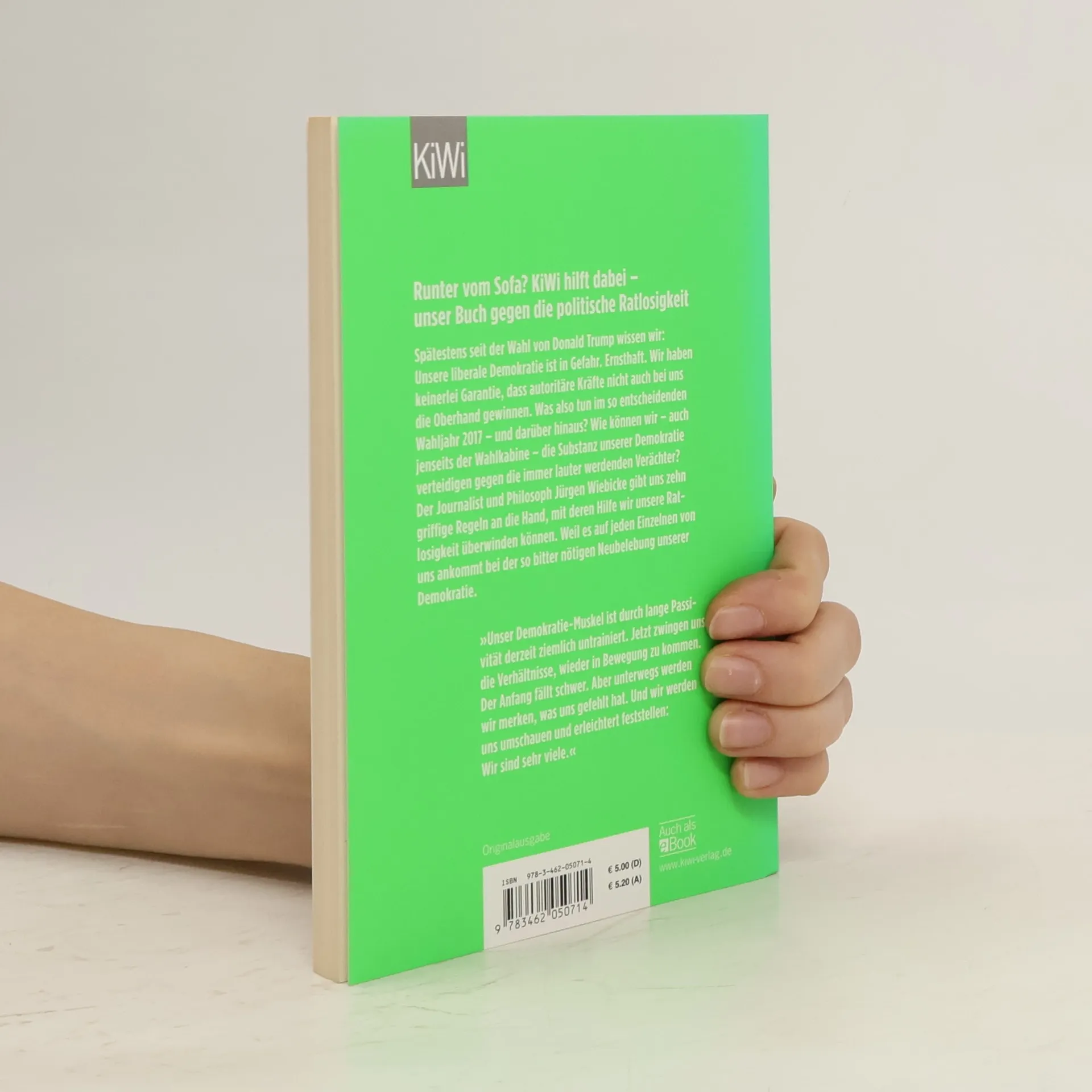 Ein Leitfaden für Demokratie-Retter Spätestens seit der Wahl von Donald Trump wissen wir: Unsere liberale Demokratie ist in Gefahr. Ernsthaft. Wir haben keinerlei Garantie, dass autoritäre Kräfte nicht auch bei uns die Oberhand gewinnen. Was also tun im so entscheidenden Wahljahr 2017 – und darüber hinaus? Wie können wir die Substanz unserer Demokratie verteidigen gegen die immer lauter und dreister werdenden Verächter – auch jenseits der Wahlkabine? Wie andere ermutigen, mitzumachen? Der Journalist und Philosoph Jürgen Wiebicke gibt uns zehn griffige Regeln an die Hand, mit deren Hilfe jeder von uns jederzeit anfangen kann. Vor der eigenen Haustür. Im Alltag. Denn – und daran müssen wir uns wieder erinnern: Die Demokratie ist mehr als eine Regierungsform, sie ist eine Lebensform, die wir immer wieder aufs Neue beleben und verteidigen müssen. Wir bei KiWi finden: Es ist Zeit für einen neuen Leitfaden! Einen Leitfaden für Demokratie-Retter!