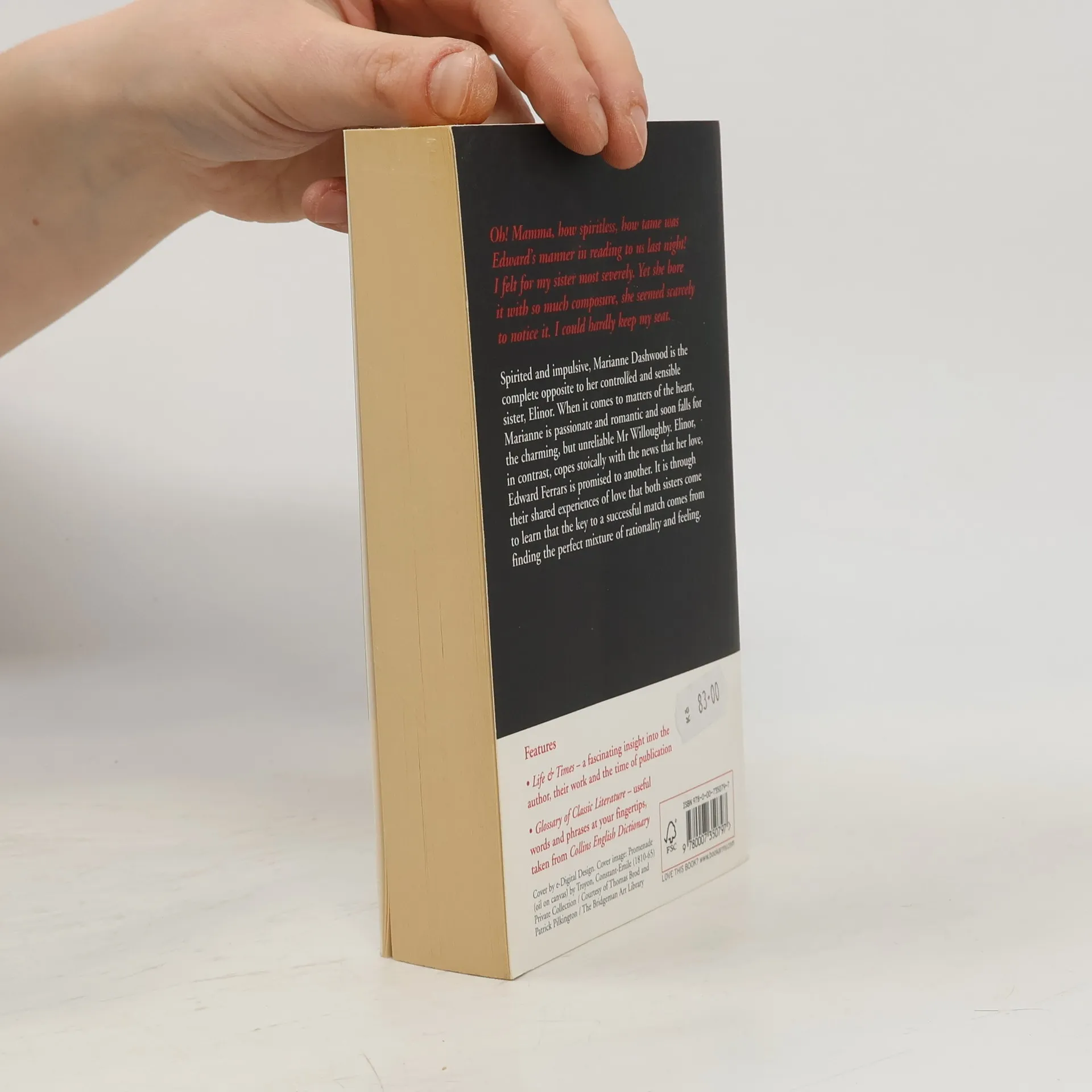 HarperCollins is proud to present its range of best-loved, essential classics. 'Oh! Mama, how spiritless, how tame was Edward's manner in reading to us last night! I felt for my sister most severely. Yet she bore it with so much composure, she seemed scarcely to notice it. I could hardly keep my seat.' Spirited and impulsive, Marianne Dashwood is the complete opposite to her controlled and sensible sister, Elinor. When it comes to matters of the heart, Marianne is passionate and romantic and soon falls for the charming, but unreliable Mr Willoughby. Elinor, in contrast, copes stoically with the news that her love, Edward Ferrars is promised to another. It is through their shared experiences of love that both sisters come to learn that the key to a successful match comes from finding the perfect mixture of rationality and feeling.
