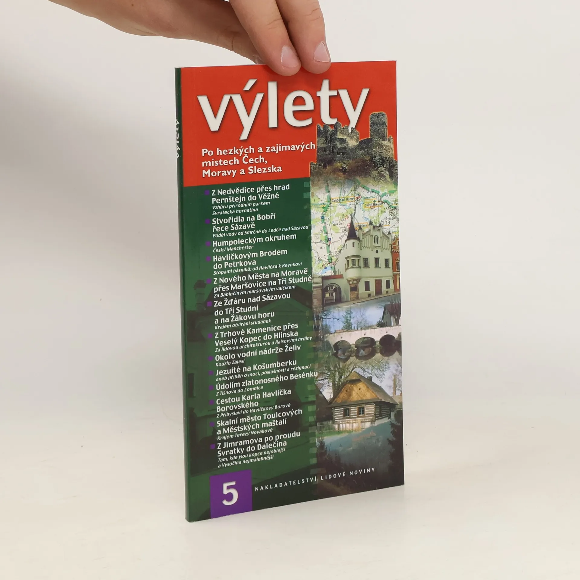Kniha "Výlety - č. 5" s podtitulem Po hezkých a zajímavých místech Čech, Moravy a Slezska. Obsahuje 118 stran. Jedná se o počin nakladatelství "NLN - Nakladatelství Lidové noviny" z roku 2002. Přejeme příjemné čtení.