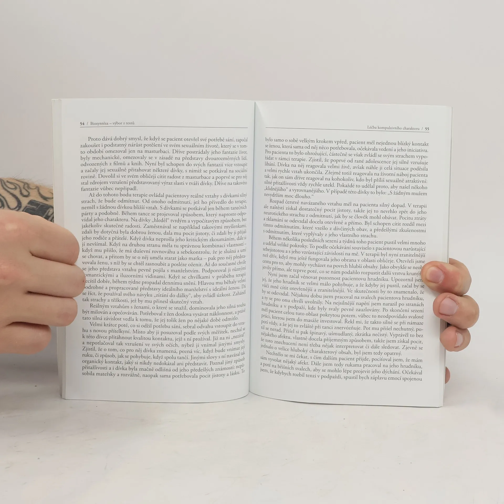 Biosyntéza je komplexní somaticky orientovaná psychoterapeutická metoda založená na spojení poznatků západní psychologie o psychosomatických blocích a východního učení o energetických drahách. Jejím zakladatelem je britský terapeut David Boadella, který je zároveň autorem většiny textů v knize. Publikaci otevírá brilantní text „Přenos, rezonance a interference“, který osvětluje způsob, jakým jsou v biosyntéze chápány klasické psychoanalytické pojmy „přenos“ a „protipřenos“. Následuje trojice kapitol obsahující rozsáhlé a bohatě komentované případové studie, popisující Boadellovu práci s klienty s hraniční, kompulzivní a schizoidní charakterovou tendencí. Dále sborník obsahuje přednášku J. A. Carletonové, věnovanou původnímu konceptu seberegulace u Wilhelma Reicha, jednoho z hlavních inspiračních zdrojů biosyntézy, a potvrzování jeho názorů v zrcadle současné neurovědy. Sborník uzavírají dvě stati předních brazilských biosyntetických terapeutek. E. Frankelová v textu „Systemická intervence v biosyntéze“ ukazuje možnosti propojování biosyntézy s metodou rodinných konstelací Berta Hellingera. E. Rodriguesová pak v textu „Biosyntéza: terapie jako tanec“ reflektuje práci teoretika tance R. Labana a způsob, jak se promítla do biosyntetického konceptu motorických polí.
