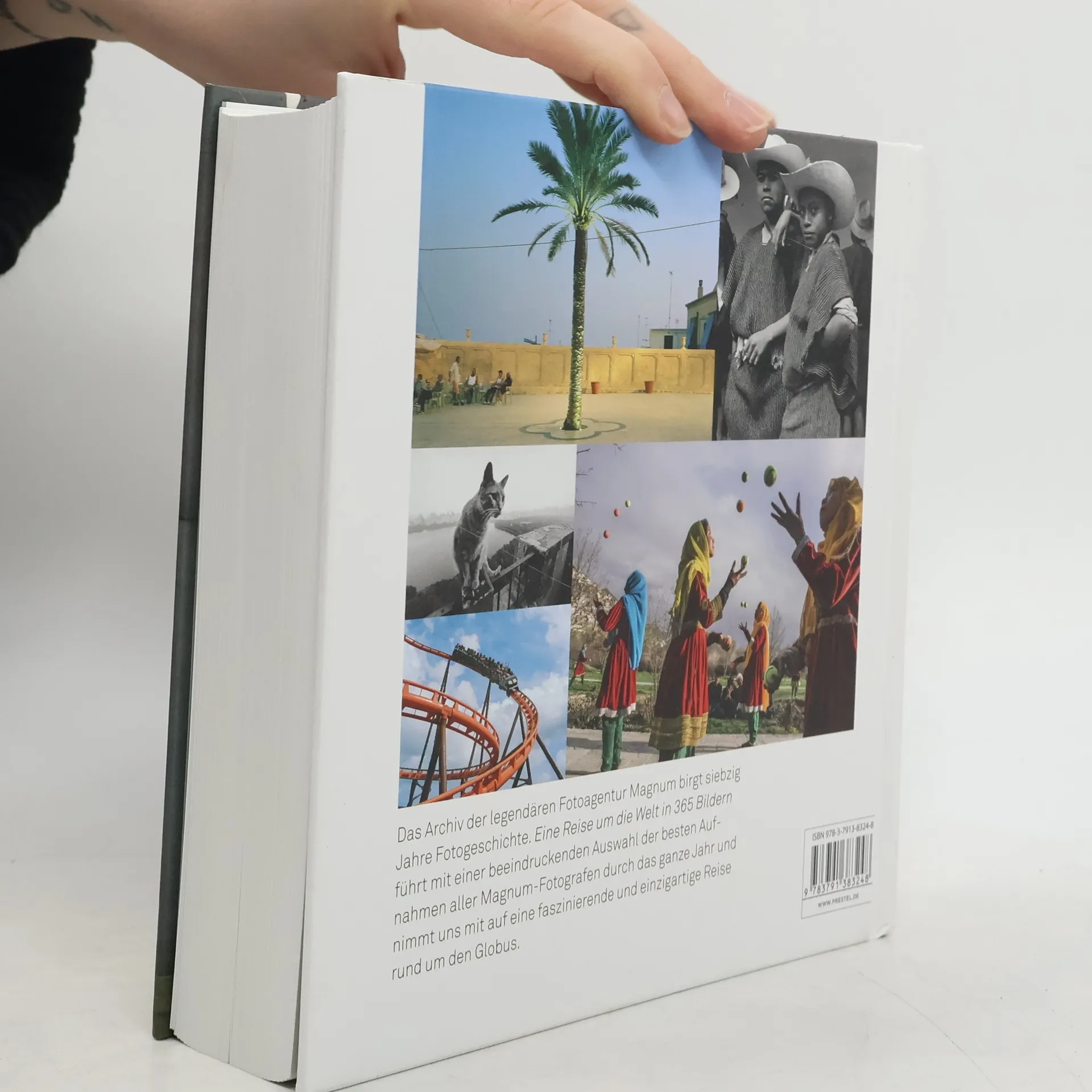 Zum 70. Geburtstag der wohl bedeutendsten Fotoagentur der Welt erhalten ihre zahllosen Fans ein ganz besonderes Geschenk: Magnum: Eine Reise um die Welt in 365 Bildern präsentiert 365 Arbeiten von Fotografen, die mit ihren außergewöhnlichen Ansichten die ganze Vielfalt unseres Planeten in brillanten Bildern einfangen. Dabei setzt das kompakte Werk die Aufmachung seiner erfolgreichen Vorgängerbände fort und präsentiert die Motive im Format eines immerwährenden Kalenders, der dementsprechend auch nach Ablauf des Jubiläumsjahrs noch bestens genutzt werden kann.Kuratiert wurde das facettenreiche Werk von Elisa Mazza. Bei ihrer Bildauswahl hat die ausgewiesene Magnum-Expertin bewusst auch jüngere und weniger bekannte Agentur-mitglieder berücksichtigt. Das Buch versteht sich als eine Art Atlas, der die verschiedenen Länder allerdings nicht über topografische Karten, sondern in Form von Fotos vorstellt. Jeder der ausgewählten Staaten wird von einem Repräsentanten porträtiert, und zwar mit bis zu vier sehr individuellen und darum so berührenden Aufnahmen von Land und Leuten.