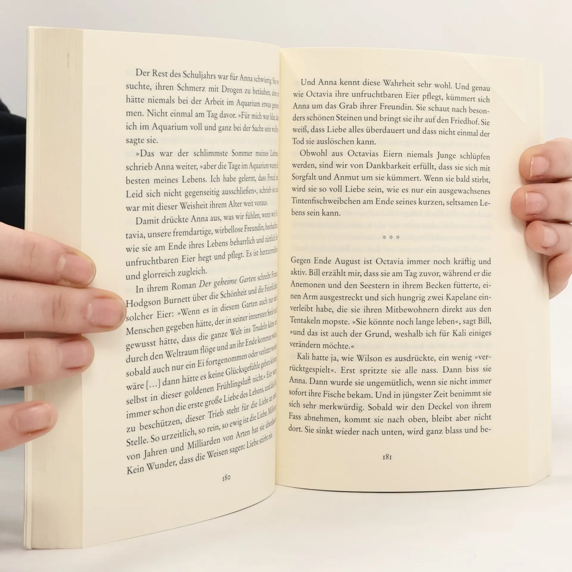Er kann gleichzeitig 1600 Küsse verteilen, mit der Haut schmecken, seine Farbe 177-mal in der Stunde ändern und sich trotz seiner 45 Kilo durch eine apfelsinengroße Öffnung zwängen. Sy Montgomery erzählt von einem wahren Wunderwesen der Meere: dem Oktopus. In ihrem preisgekrönten Buch lässt sie uns ein Wesen entdecken, von dessen erfindungsreicher Schläue und Empfindsamkeit wir nichts ahnten. »Phantastische Tiere. Phantastisches Buch«, so Donna Leon.