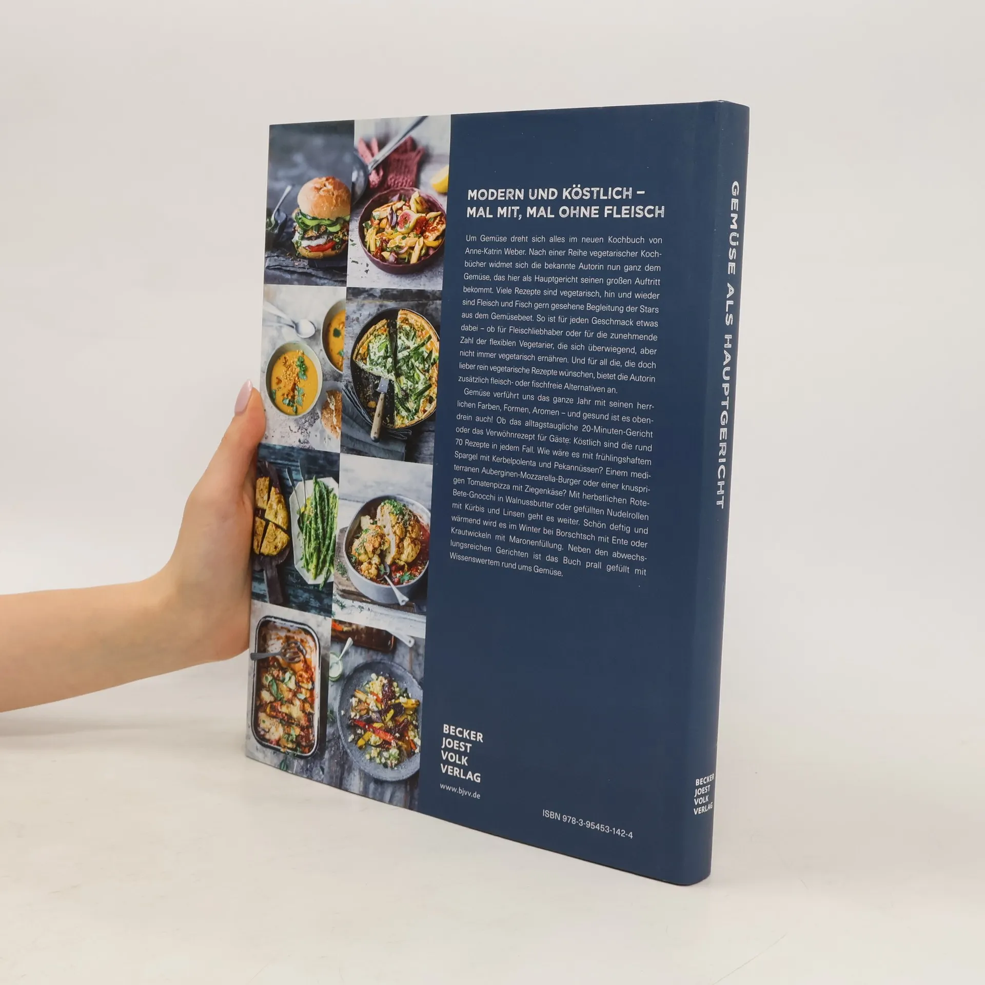 Modern und köstlich – mal mit, mal ohne Fleisch Um Gemüse dreht sich alles im neuen Kochbuch von Anne-Katrin Weber. Nach einer Reihe vegetarischer Kochbücher widmet sich die bekannte Autorin nun ganz dem Gemüse, das hier als Hauptgericht seinen großen Auftritt bekommt. Viele Rezepte sind vegetarisch, hin und wieder sind Fleisch und Fisch gern gesehene Begleitung der Stars aus dem Gemüsebeet. So ist für jeden Geschmack etwas dabei: ob für Fleischliebhaber oder für die zunehmende Zahl der „flexiblen Vegetarier“, die sich überwiegend, aber nicht immer vegetarisch ernähren. Und für all die, die doch lieber rein vegetarische Rezepte wünschen, bietet die Autorin zusätzlich fleisch- oder fischfreie Alternativen an. Gemüse verführt uns das ganze Jahr über mit seinen herrlichen Farben, Formen, Aromen – und gesund ist es obendrein auch noch! Ob das alltagstaugliche 20-Minuten-Gericht oder das Verwöhnrezept für Gäste: Köstlich sind die über 80 Rezepte in jedem Fall! Neben den abwechslungsreichen Gerichten ist das Buch prall gefüllt mit Wissenswertem rund ums Gemüse. Wie wäre es mit frühlingshaftem Spargel mit weißem Bohnenpüree, Speck und Salbei? Oder einem mediterranen Auberginen-Mozzarella-Burger oder einer knusprigen Tomatentarte? Mit herbstlichen Rote-Bete-Gnocchi oder gefüllten Nudelrollen mit Kürbis und Linsen geht es weiter. Schön deftig und wärmend wird es im Winter bei Borschtsch mit Ente oder Krautwickeln mit Maronenfüllung.