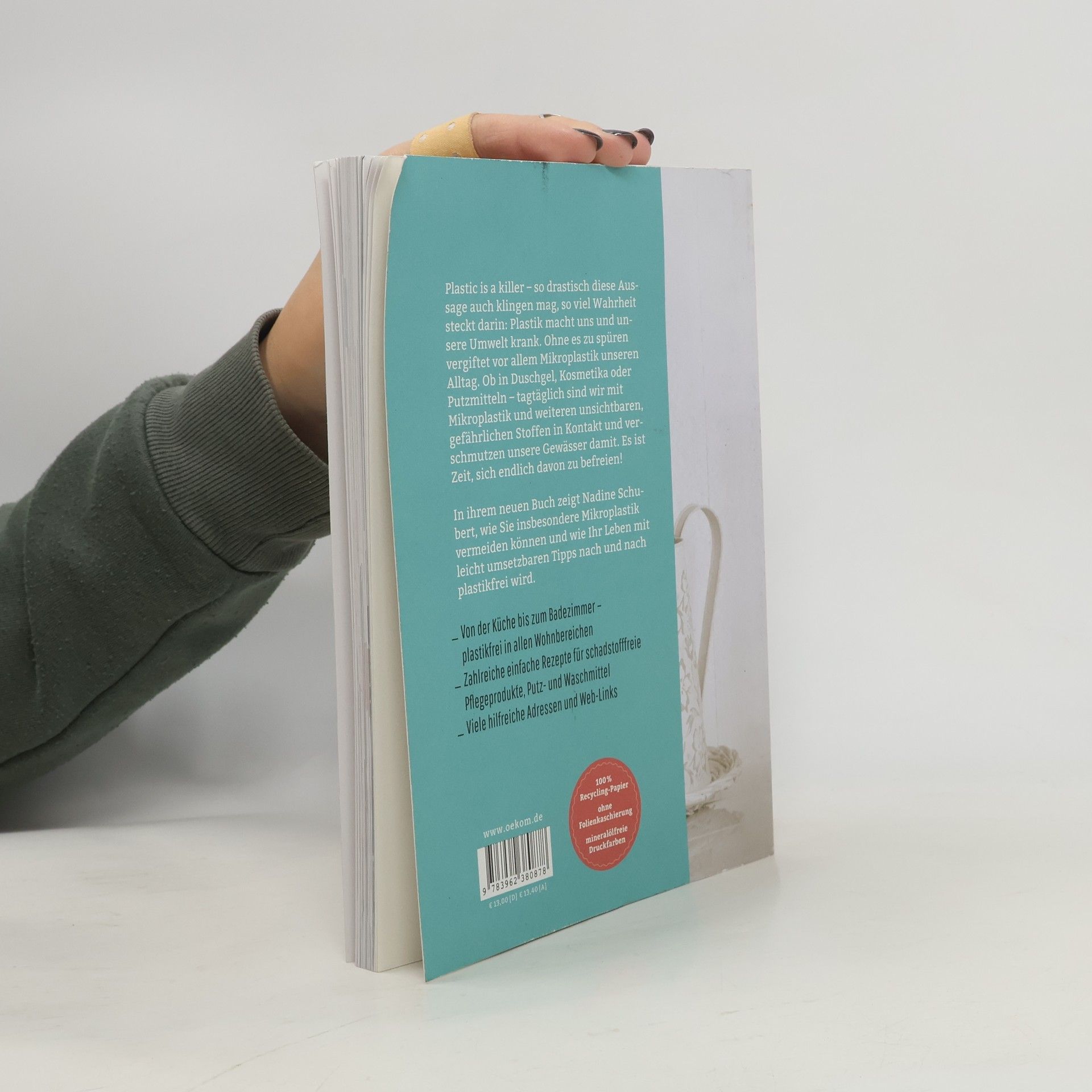 Plastic is a killer – so drastisch diese Aussage auch klingen mag, so viel Wahrheit steckt darin: Plastik macht uns und unsere Umwelt krank. Ohne es zu spüren vergiftet vor allem Mikroplastik unseren Alltag. Ob in Duschgel, Kosmetika oder Putzmitteln – tagtäglich sind wir mit Mikroplastik und weiteren unsichtbaren, gefährlichen Stoffen in Kontakt und verschmutzen unsere Gewässer damit. Es ist Zeit, sich endlich davon zu befreien! In ihrem neuen Buch zeigt Nadine Schubert, wie Sie insbesondere Mikroplastik vermeiden können und wie Ihr Leben mit leicht umsetzbaren Tipps nach und nach plastikfrei wird. - Von der Küche bis zum Badezimmer – plastikfrei in allen Wohnbereichen - Zahlreiche einfache Rezepte für schadstofffreie Pflegeprodukte, Putz- und Waschmittel - Viele hilfreiche Adressen und Web-Links